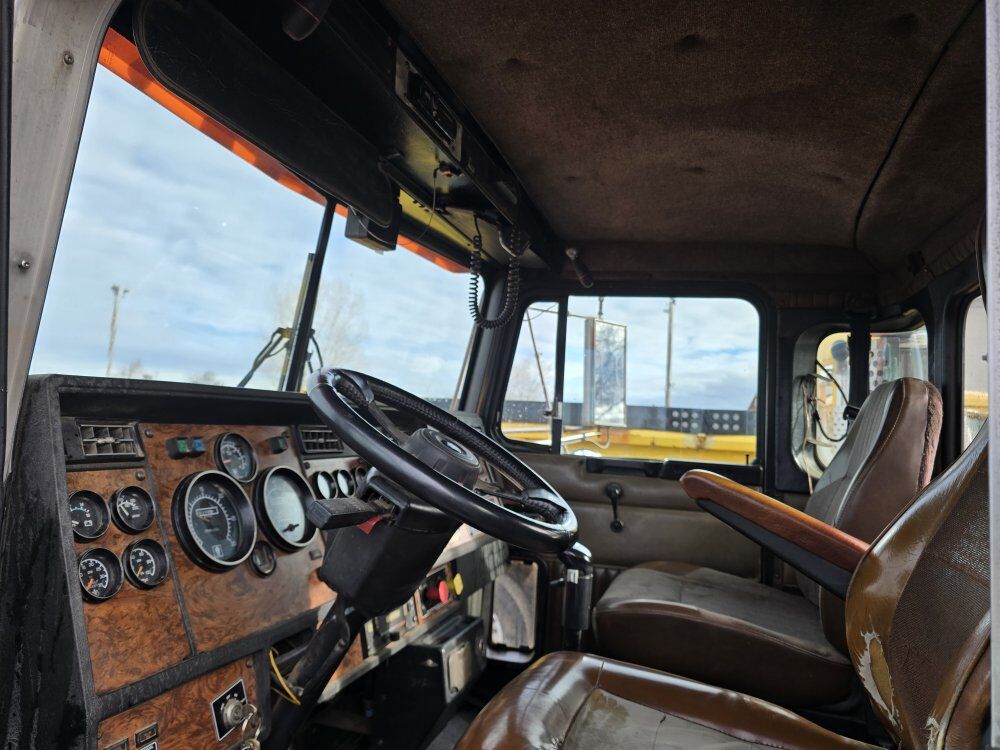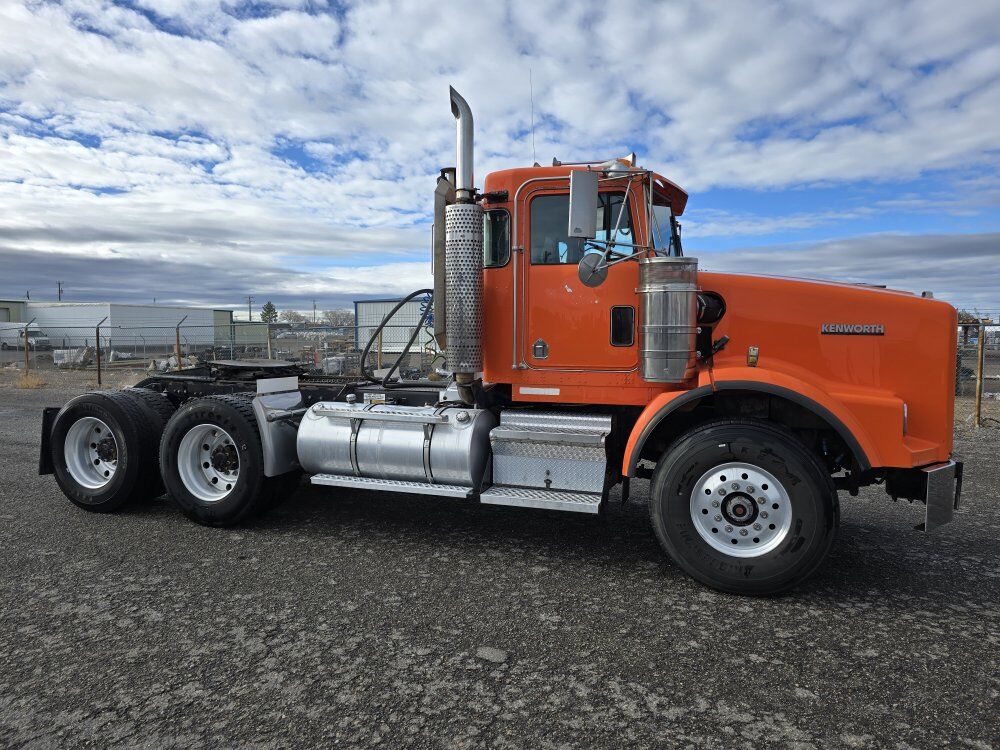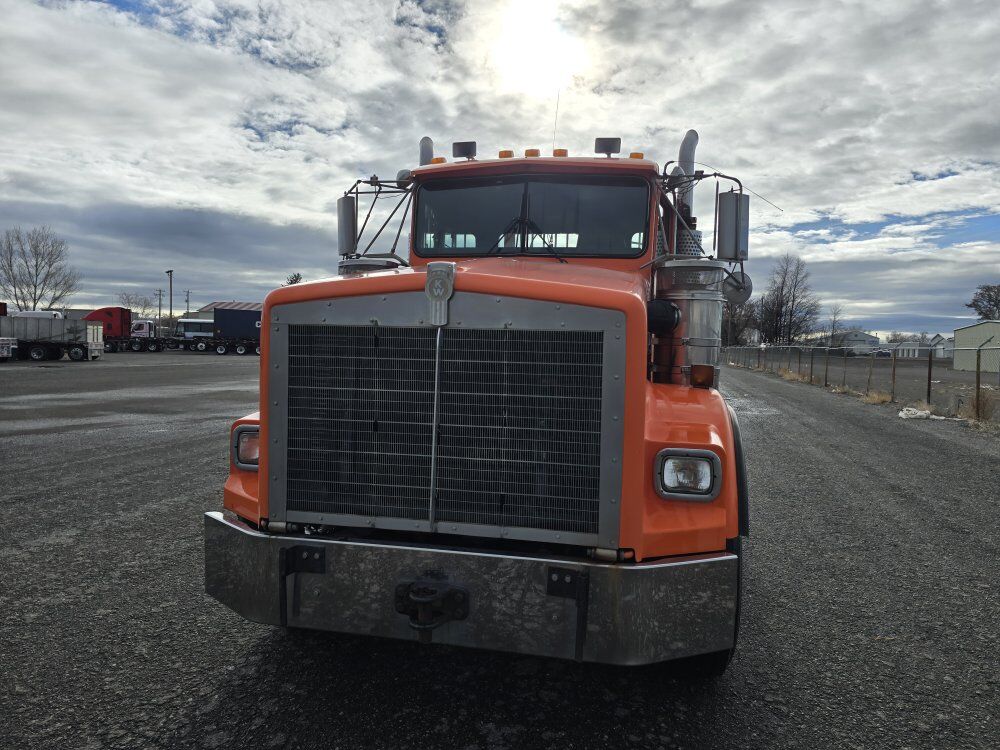 1999 Kenworth T800B day cab semi tractor wet kit, 475 horsepower 3406E CAT diesel engine, 18 speed manual transmission, 489,000 miles, engine brake, 4.33 rear end ratio, reman engine around 1,400 hours ago, 68,000GVW, 8 bag rear suspension, Lowboy ramps, good tires, former municipal truck 208-734-3434