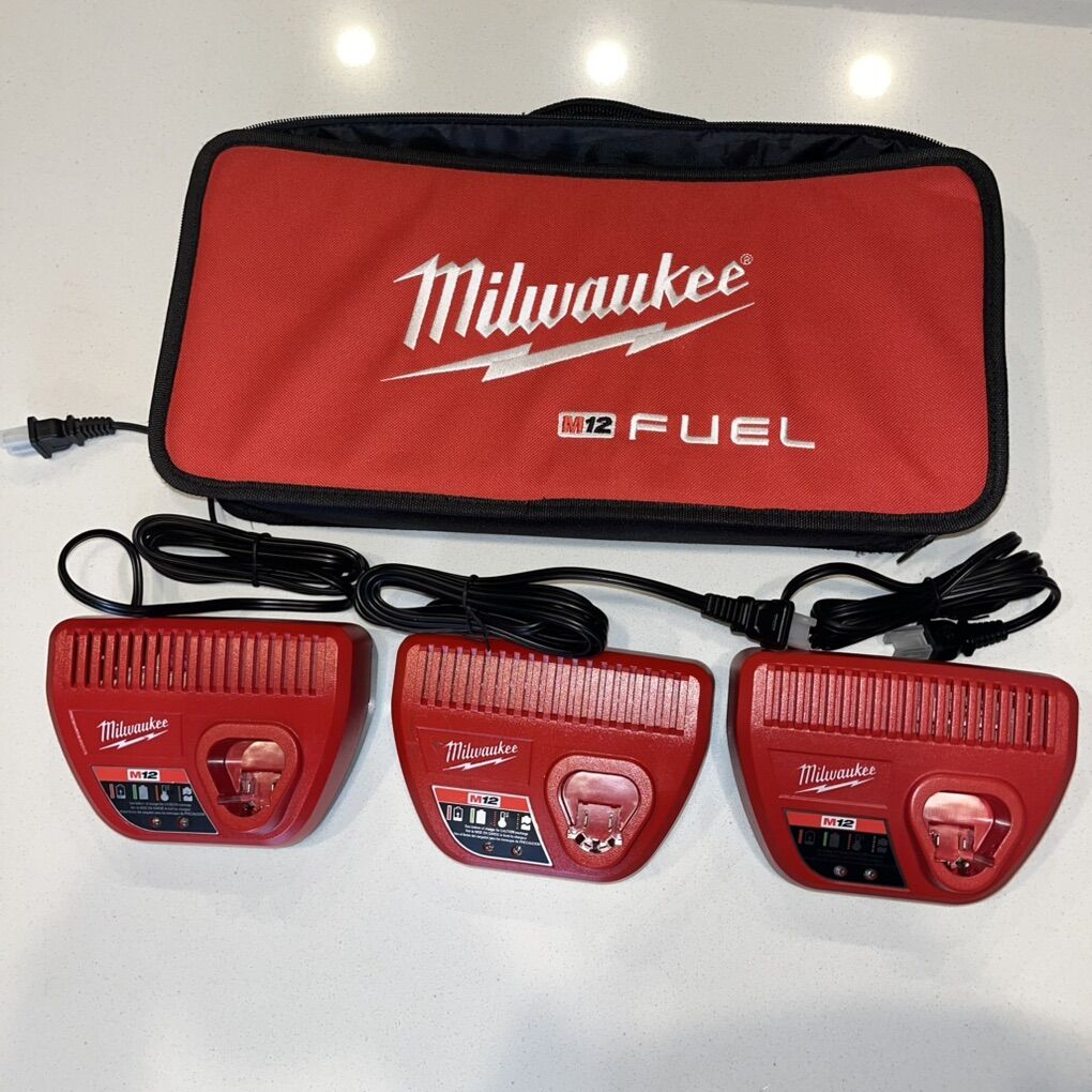 VenmoQty. 3 Milwaukee M12 chargers with Milwaukee M12 carrying case. All chargers work great.