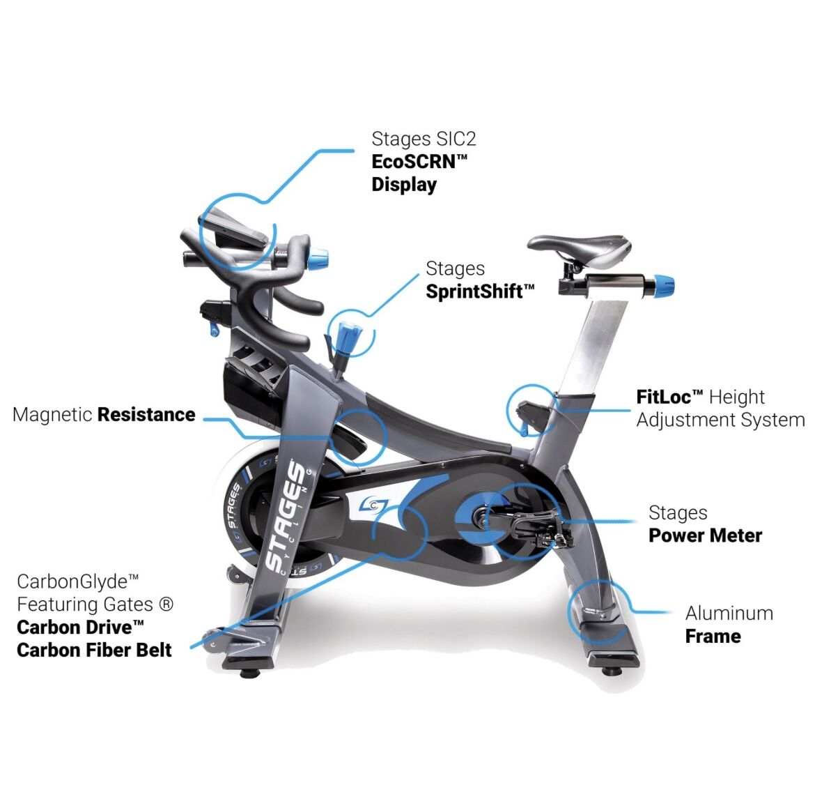 “Innovative bike features, such as the aluminum frame, CarbonGlyde carbon fiber belt drive, magnetic braking system, FitLoc, and SprintShift make it the simplest bike to maintain. Included on the SC3 is the Stages Power meter; the most accurate, reliable, and consistent direct power meter on the market.”