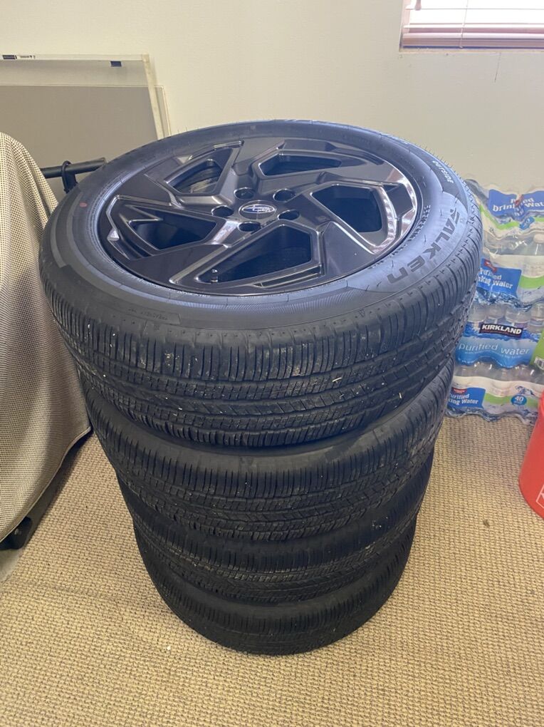 Brand new wheels and tires from a 2025 Subaru Crosstrek sport. They literally have 1500 miles on them, like new condition, lug nuts included. Bolt pattern 5 x 114.3.