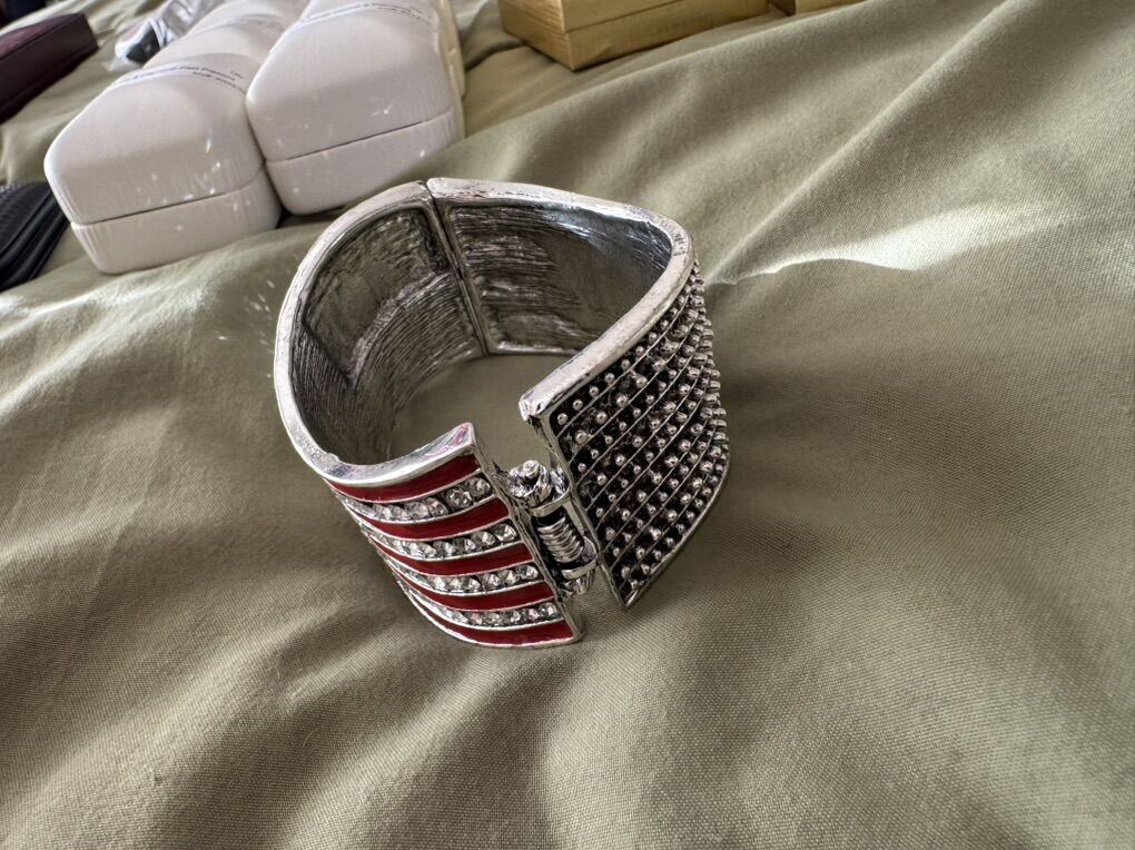 Large American Flag Crystal Bangle Bracelet