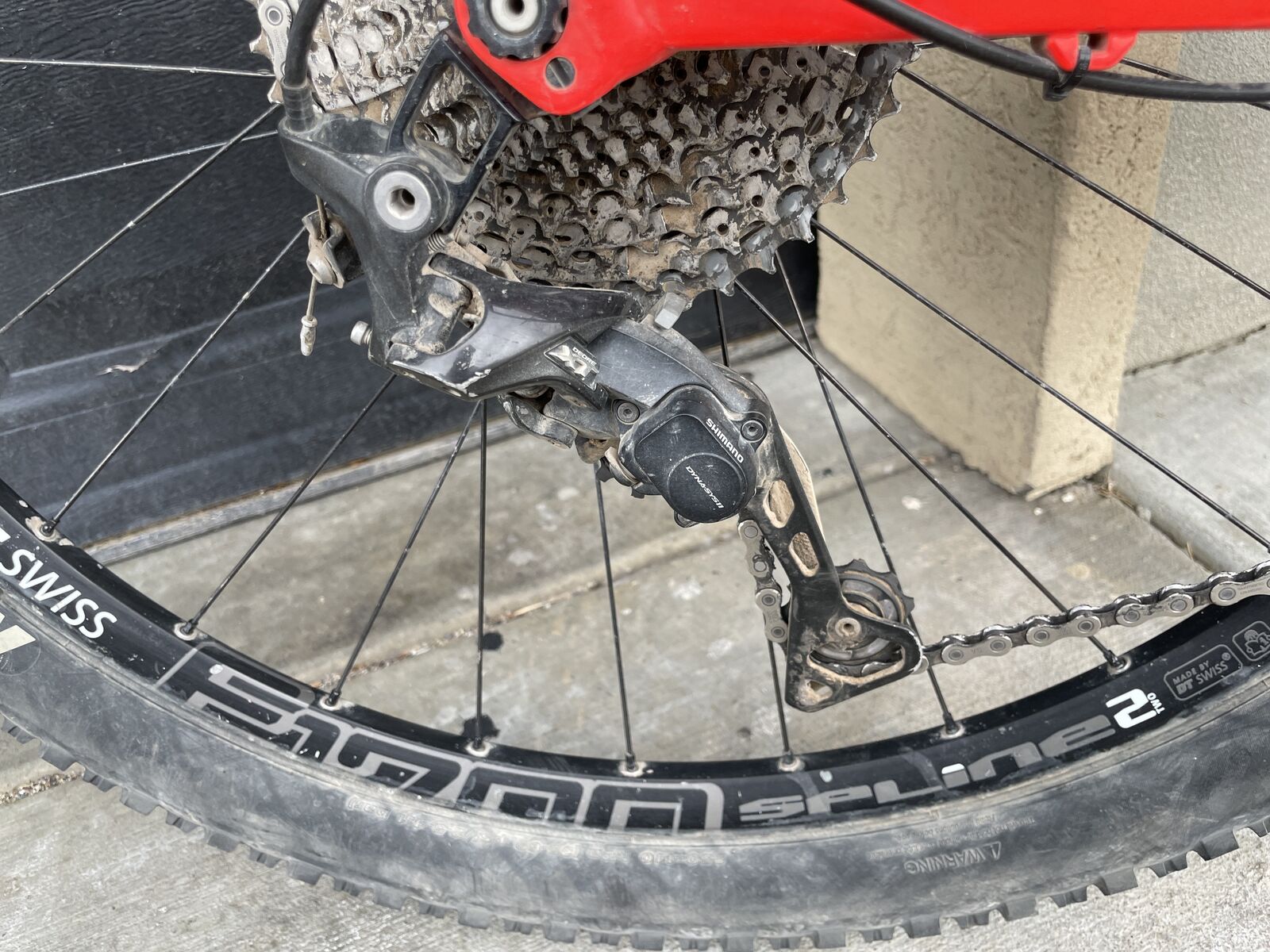 It has Full XT Drivetrain and brakes. Carbon Frame.