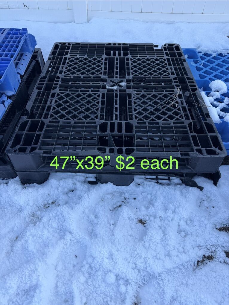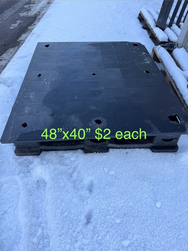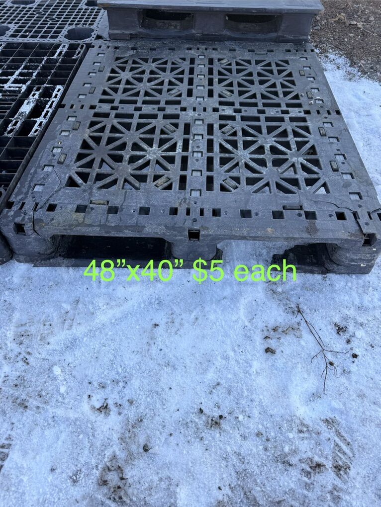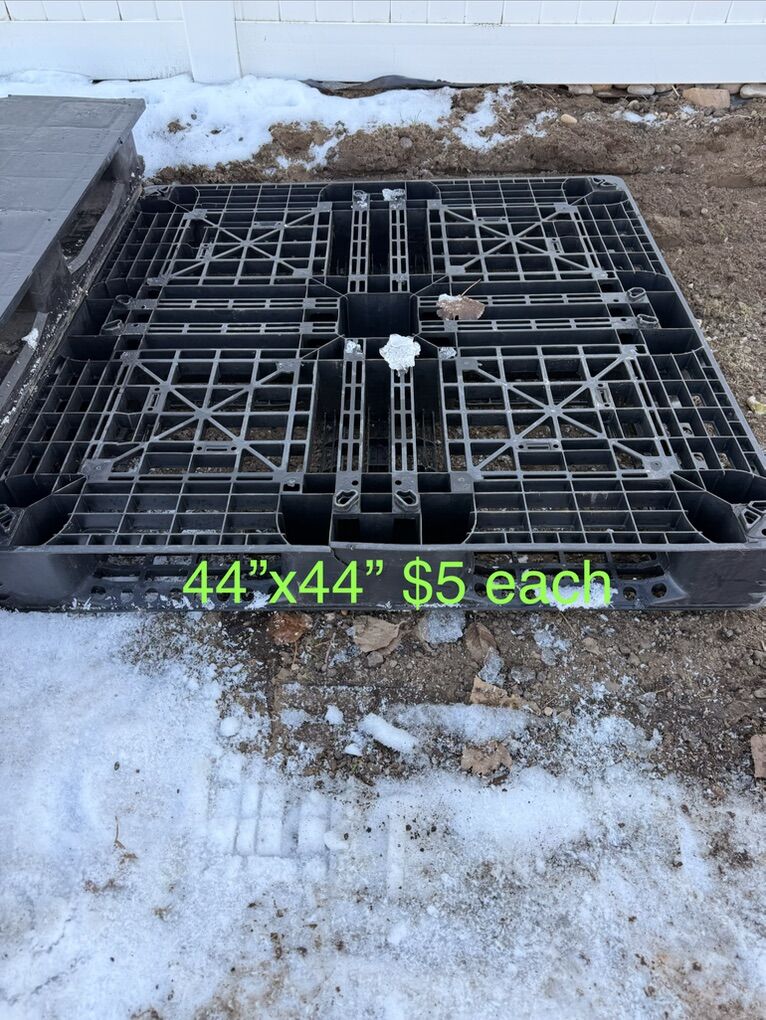 VenmoAre you flooding or just need to get your stuff off the ground?? Just got another load of plastic pallets so there’s a great variety to choose from. See pictures for price and measurements. I have more pallets than what’s listed I can only have 10 photos. Most common sizes are: 43”x43” 45”x45” 47”x39” 48”x40” We have pallets from $1,$2,$5 and $10 a piece. These pallets are great for hay bales, lifetime sheds, green houses, and what ever else you could think of. Pick up in Plain City/West Weber area Cash or Venmo Will hold with payment