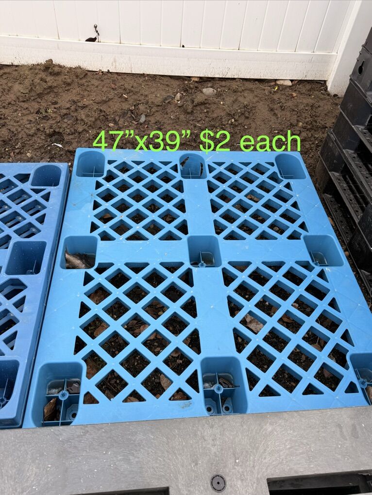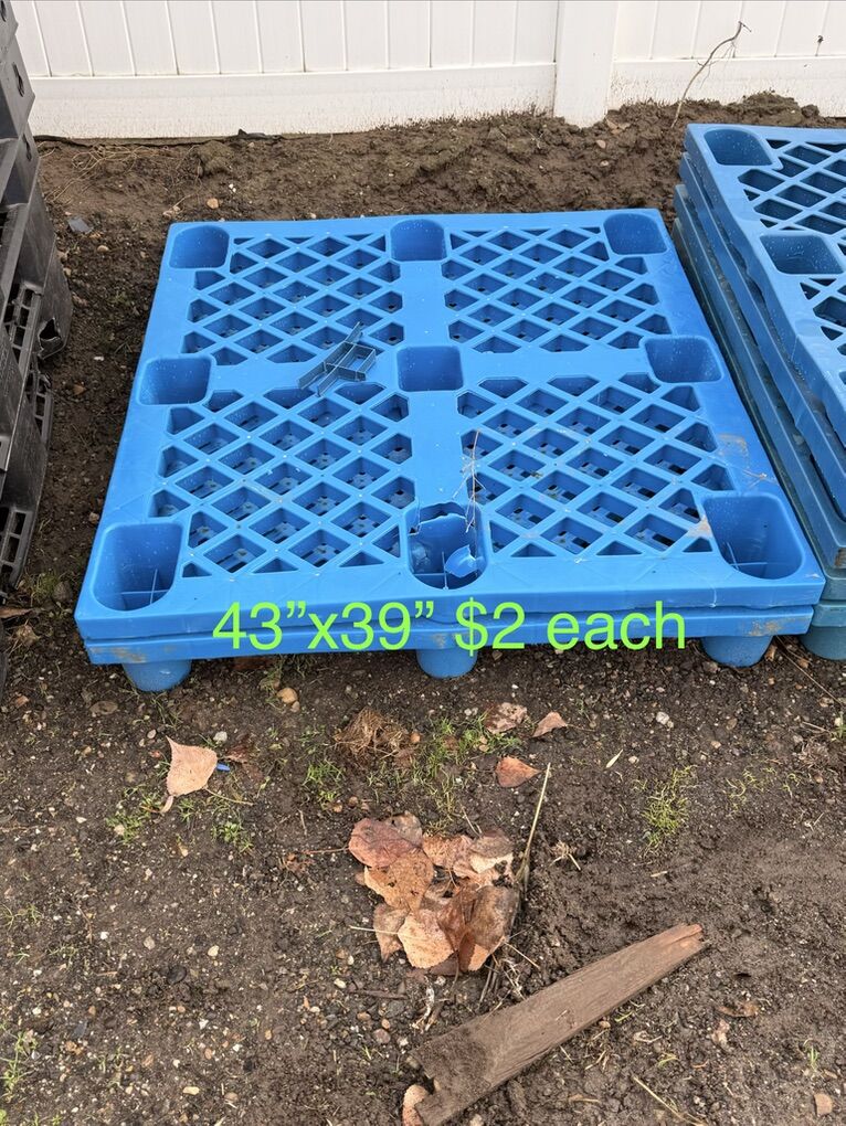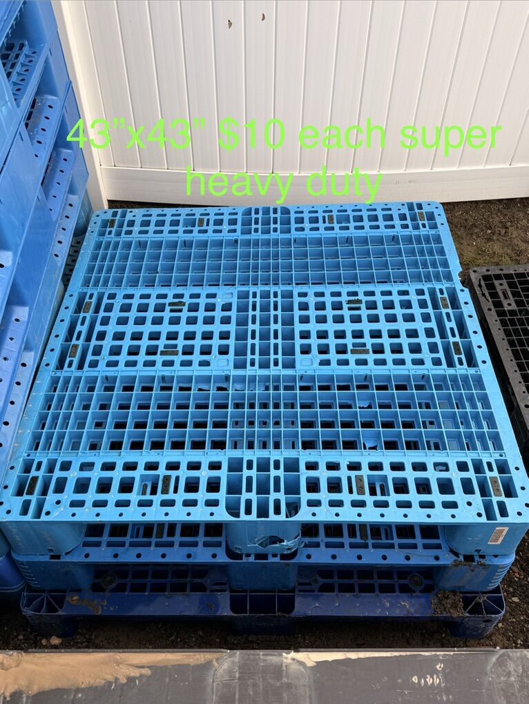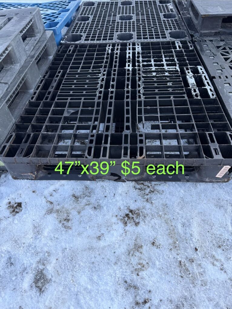 VenmoAre you flooding or just need to get your stuff off the ground?? Just got another load of plastic pallets so there’s a great variety to choose from. See pictures for price and measurements. I have more pallets than what’s listed I can only have 10 photos. Most common sizes are: 43”x43” 45”x45” 47”x39” 48”x40” We have pallets from $1,$2,$5 and $10 a piece. These pallets are great for hay bales, lifetime sheds, green houses, and what ever else you could think of. Pick up in Plain City/West Weber area Cash or Venmo Will hold with payment