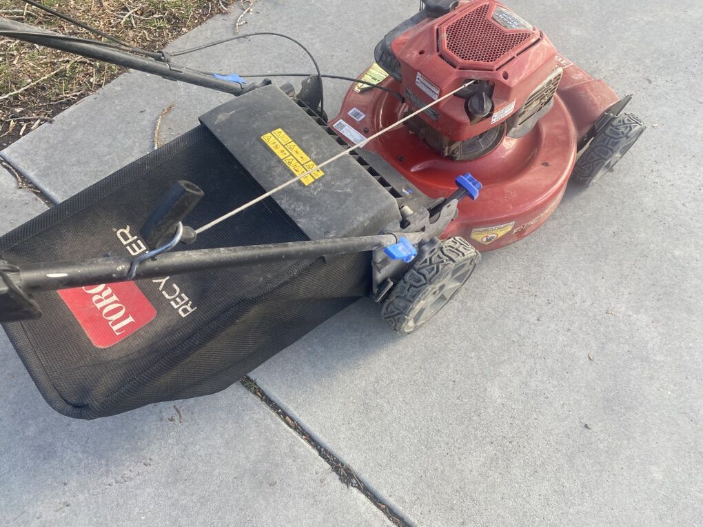 We’ve had this lawn mower for a few years we’ve replaced the blade once and the bottom piece feeding the bag broke