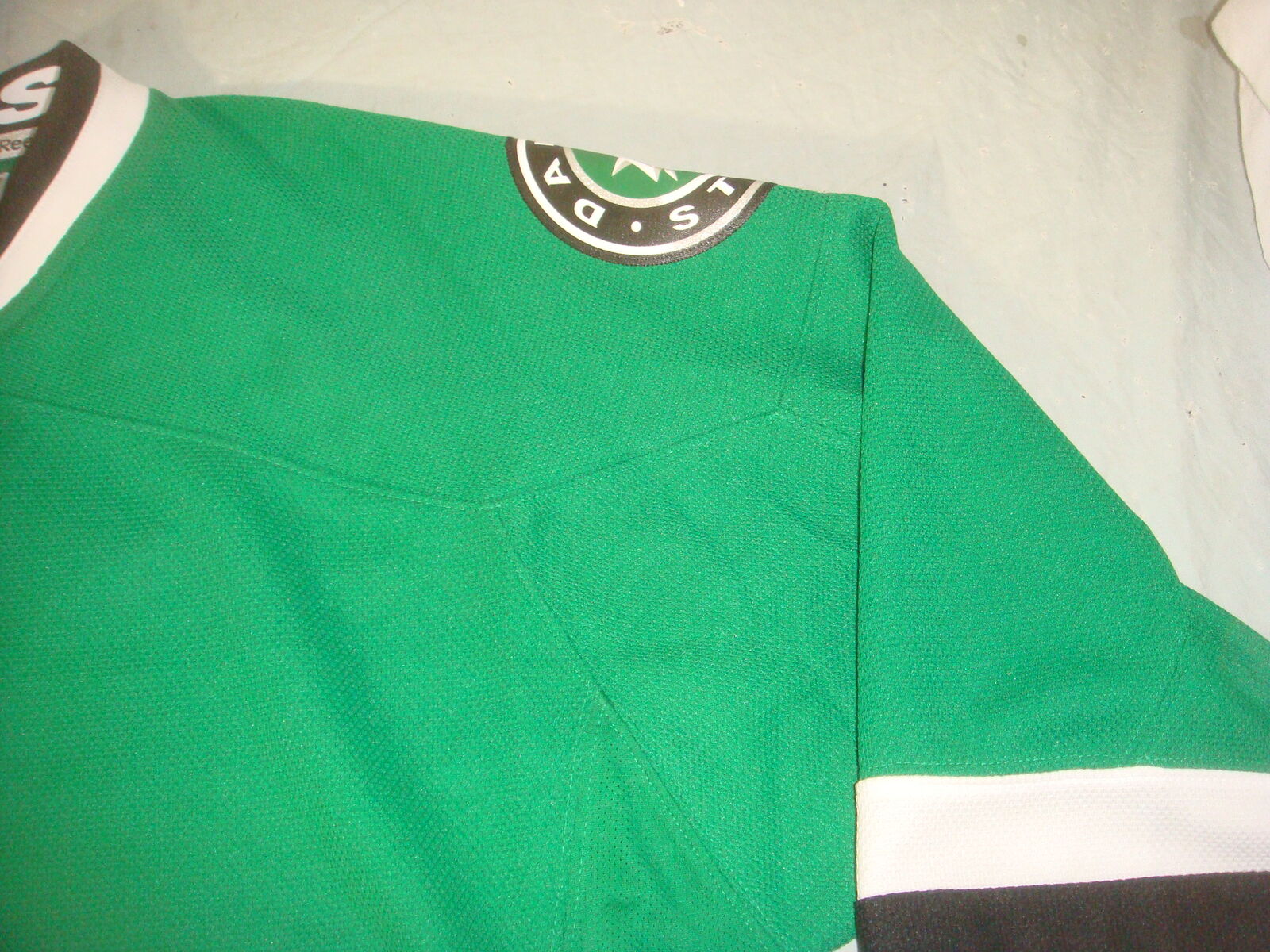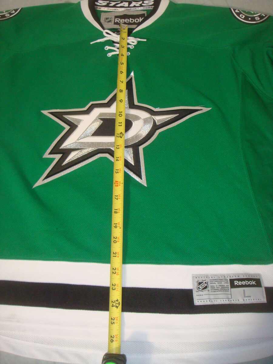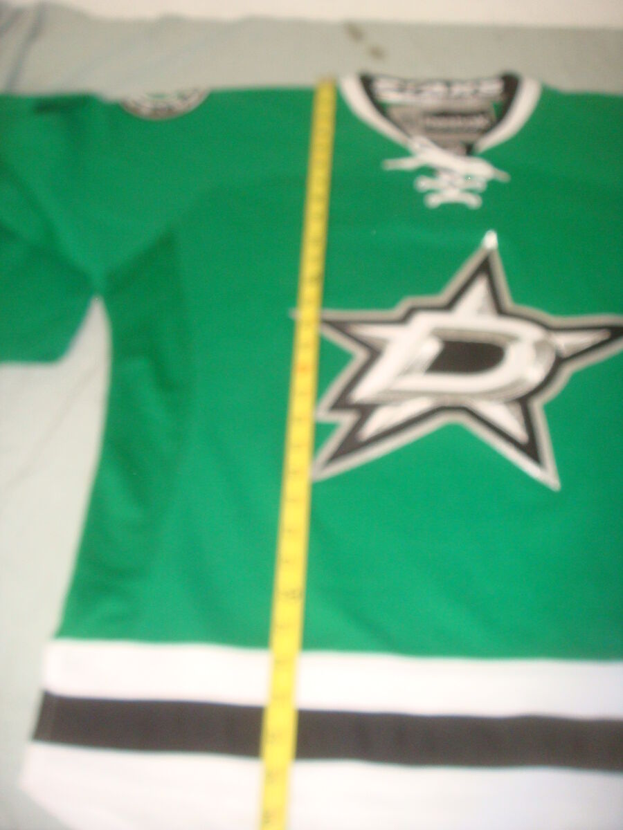 DALLAS STARS NHL CERTIFIED HOCKEY JERSEY SIZE L. This is a new, open box item without original tags. It has never been worn, but has a tiny snag on the front and a small dirty spot on the bottom from being moved around (It's super minor and will probably wash out easily). Measurements are shown in the photos. It comes with everything shown. This is your chance to save big-time so don't miss out!!