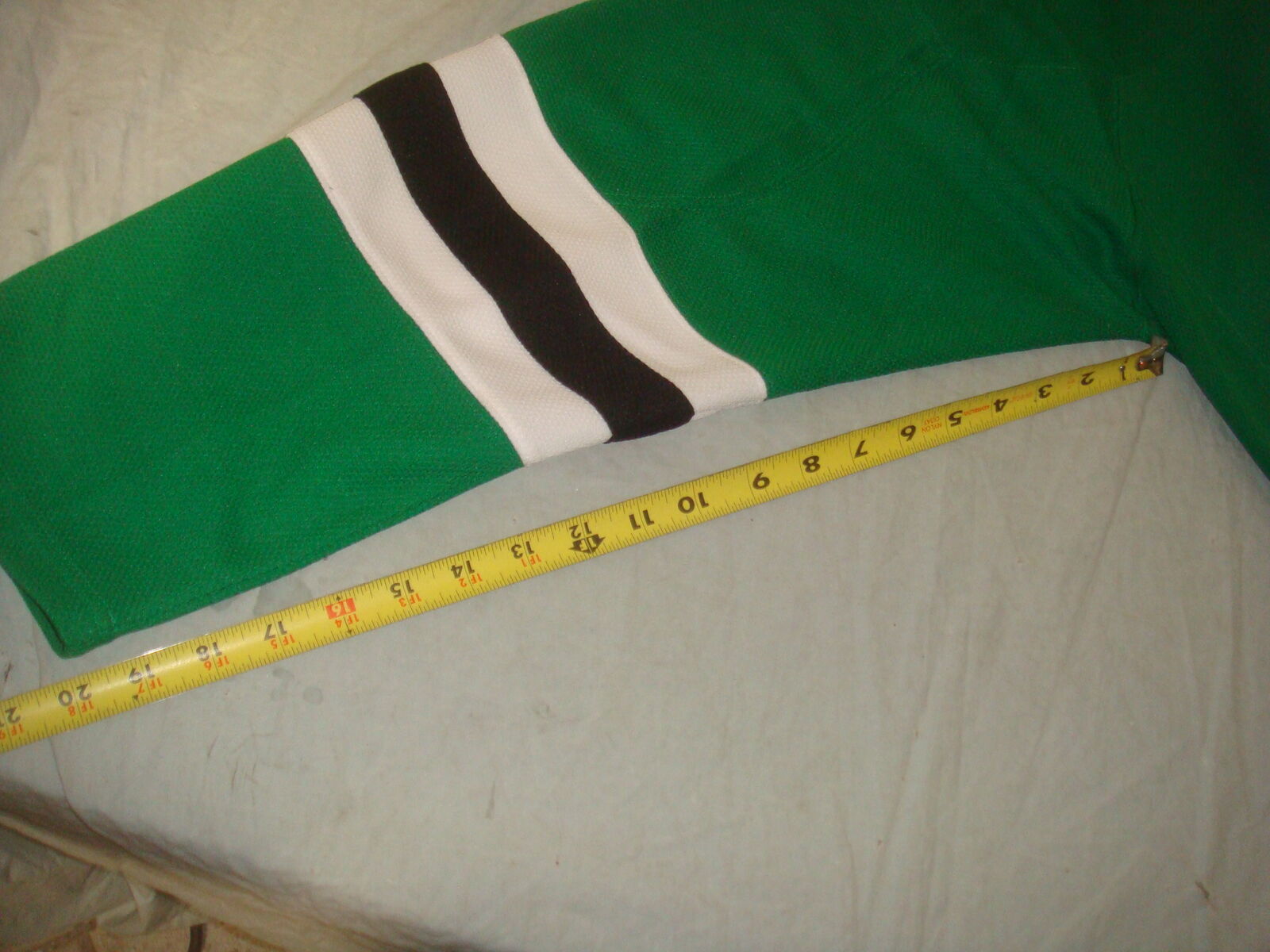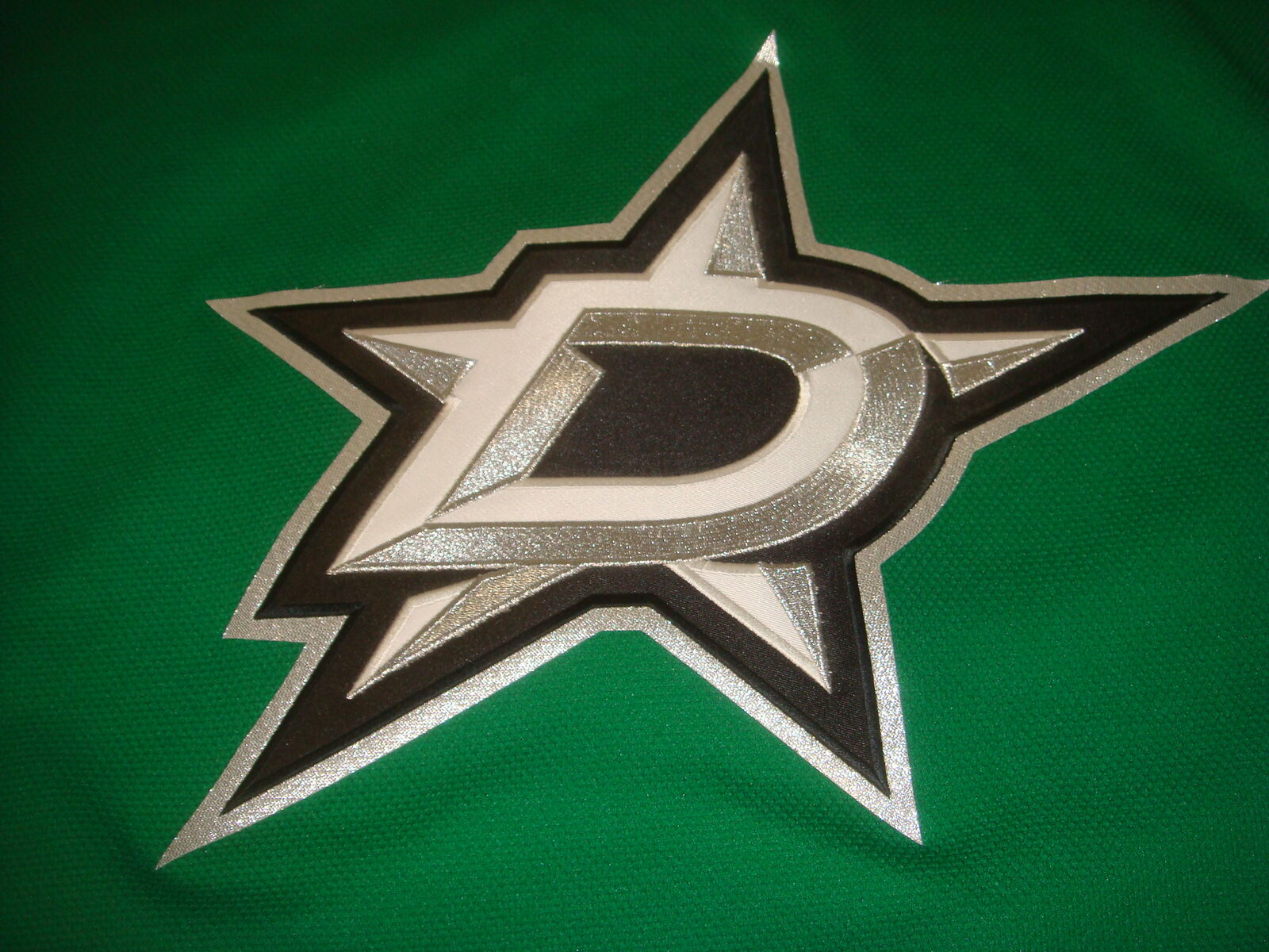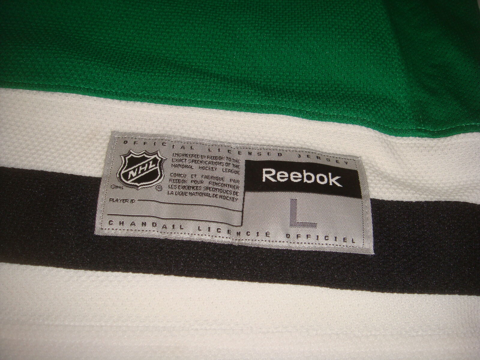 DALLAS STARS NHL CERTIFIED HOCKEY JERSEY SIZE L. This is a new, open box item without original tags. It has never been worn, but has a tiny snag on the front and a small dirty spot on the bottom from being moved around (It's super minor and will probably wash out easily). Measurements are shown in the photos. It comes with everything shown. This is your chance to save big-time so don't miss out!!