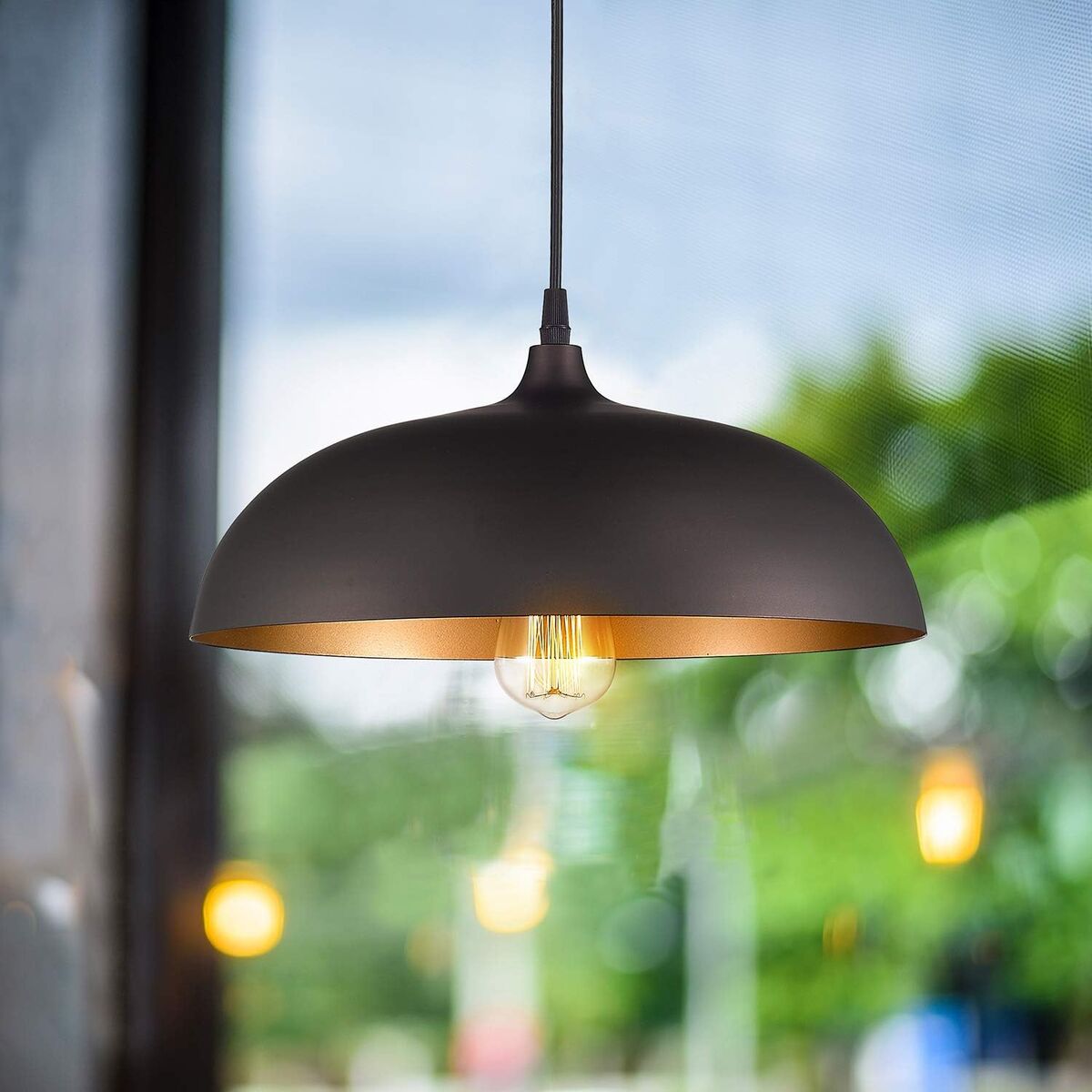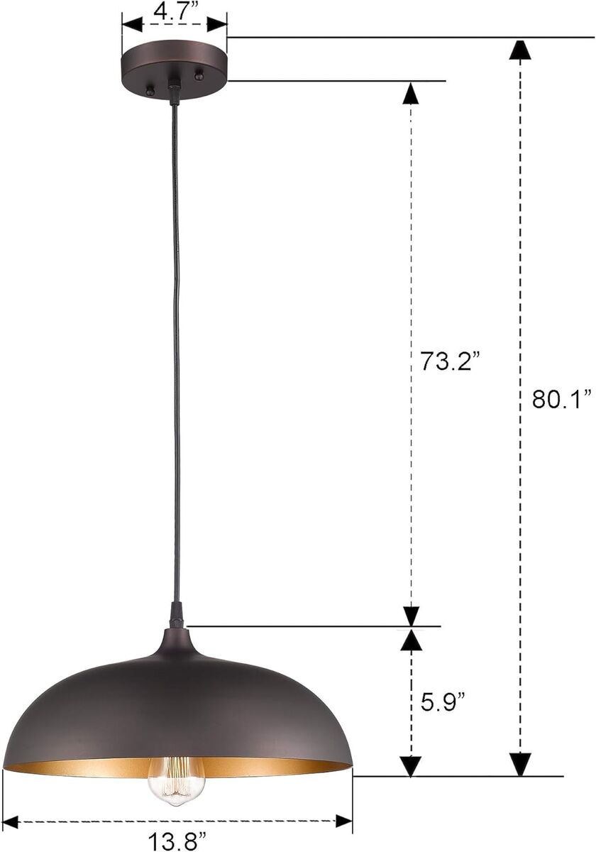 About this item - Vintage dome pendant light features sturdy metal dome shade design, with oil rubbed bronze finish exterior and gold finish interior, create a warm ambiance to any space