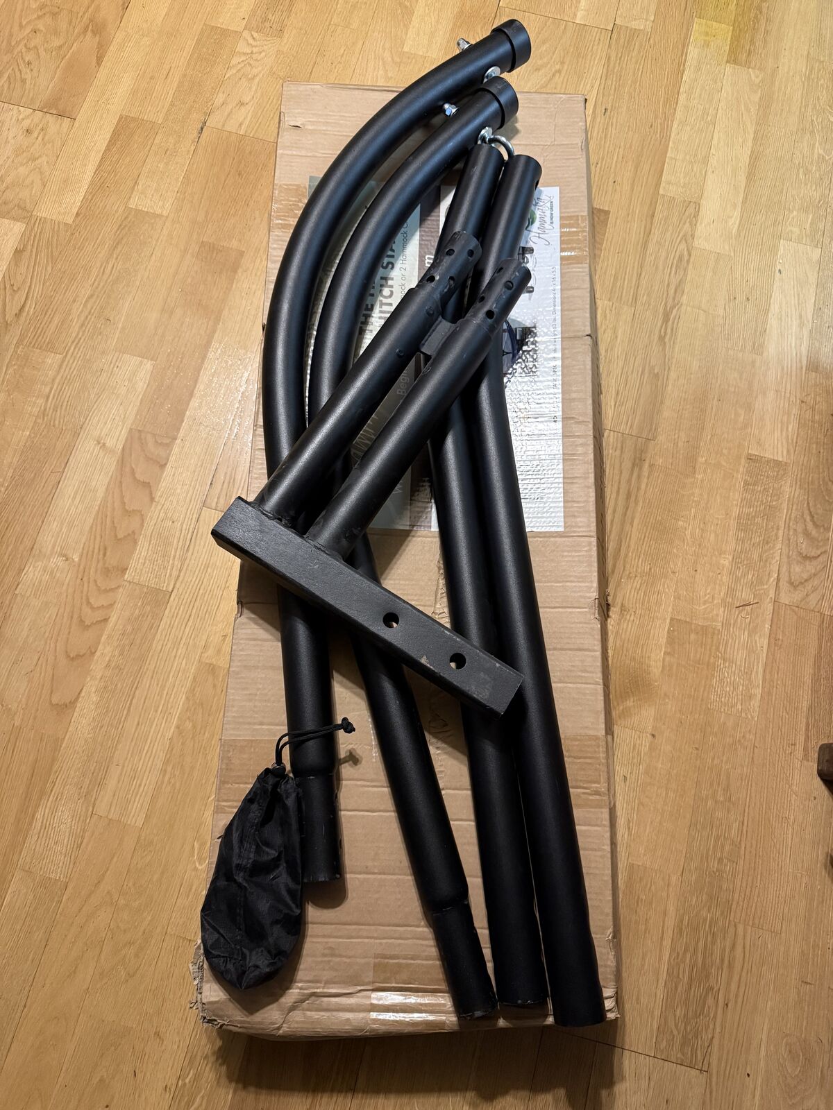 I have two of these setups and only need one. This one is the new, more versitile version that can configured to support either chairs or a hammock.