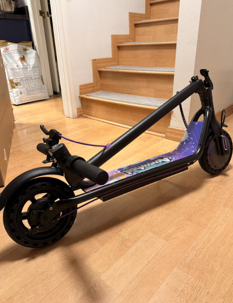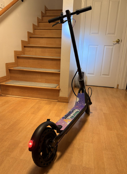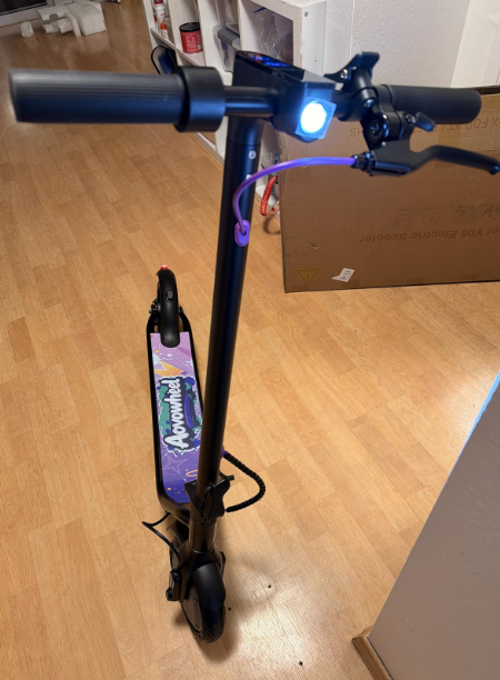 ZellePowerful Motor & Long Range Equipped with a 350W motor, This scooter reaches speeds up to 19 MPH and delivers up to 12 miles of riding on a single charge. Perfect for school commutes, weekend adventures, or park rides, this kids’ electric scooter offers excitement and reliable performance for young riders Dual Braking & Bright Lighting System for SafeThe scooter has EABS front brake and rear drum brake for responsive stopping power. Bright LED headlights illuminate the path, while the rear brake light increases visibility during evening rides. The 8.5-inch solid tires provide shock absorption and a smooth ride across different terrains