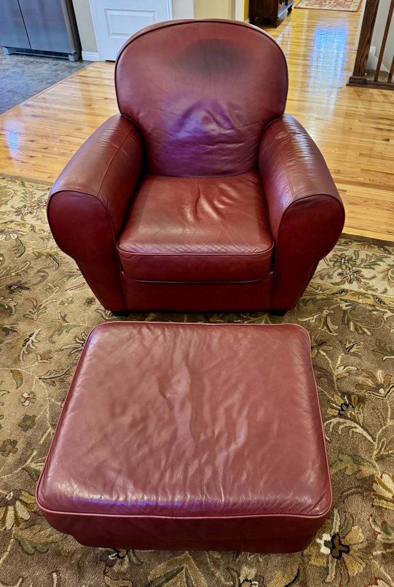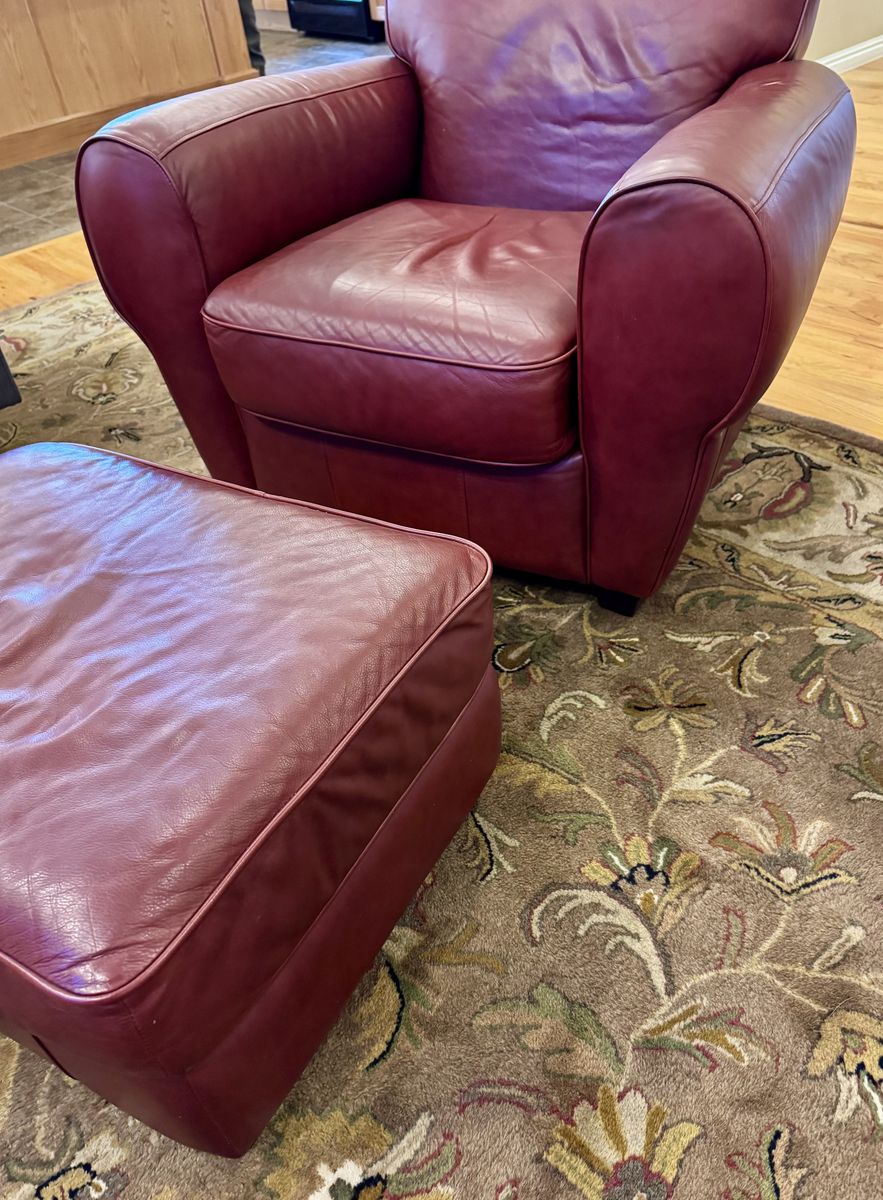 Club Chair 38” high x 40” wide x 34” deep + ottoman
