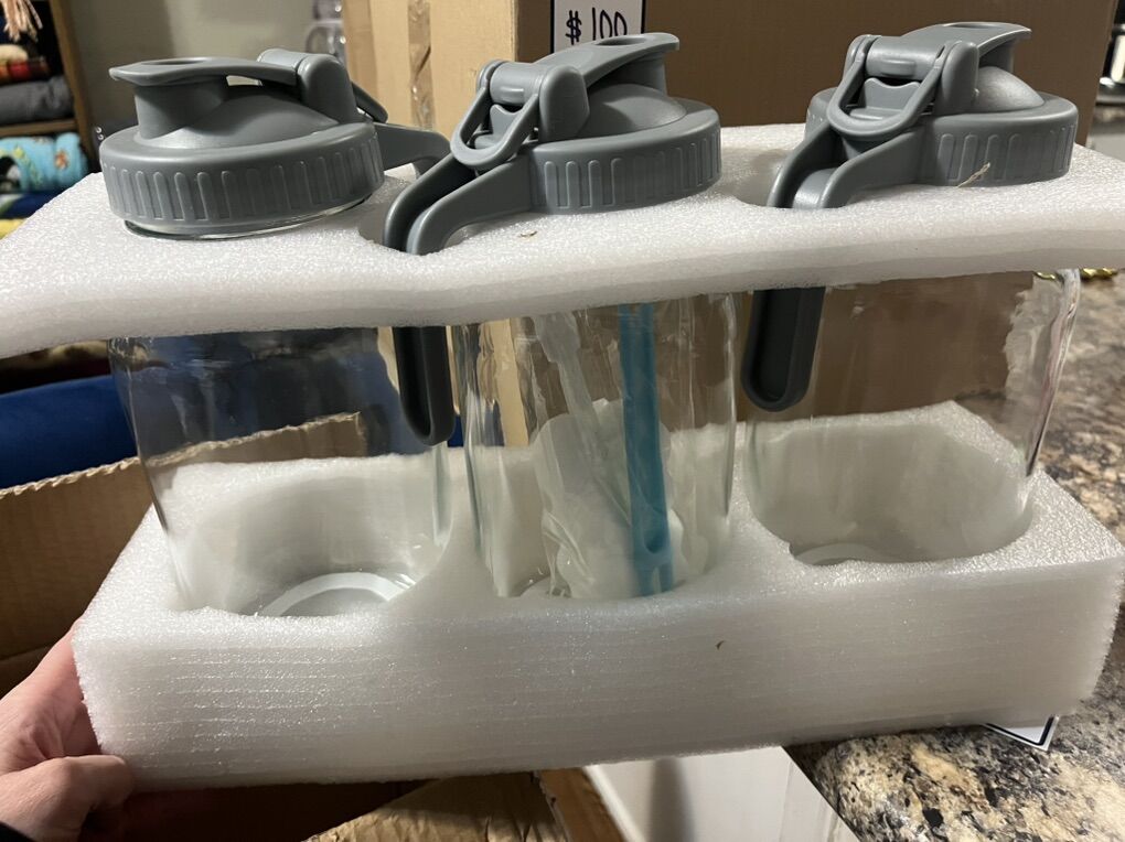 ZelleBRAND NEW- 3 Pack 64oz Mason Jar Pitcher with Lid – Wide Mouth, Leakproof Glass Water Jug, Breast Milk Pitcher for Juice, Milk, Tea, Cold Brew Coffee (3 gray) Check out my other adds, or set up a time to come shop my little garage store