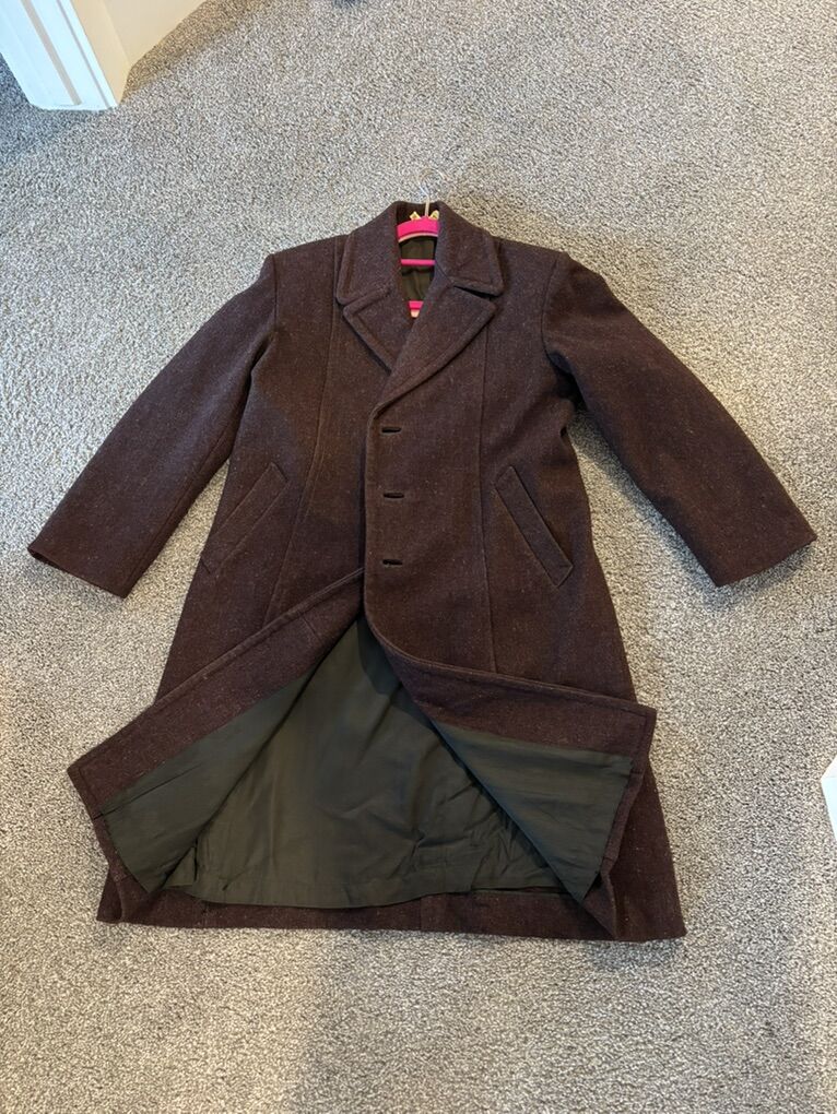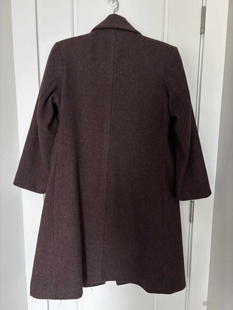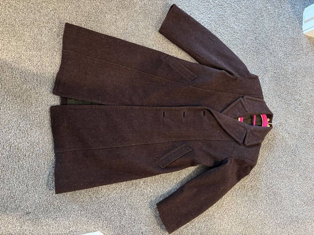 VenmoLady's maroon woolen coat for sale, The wool coat has been dry-cleaned. The size is medium.