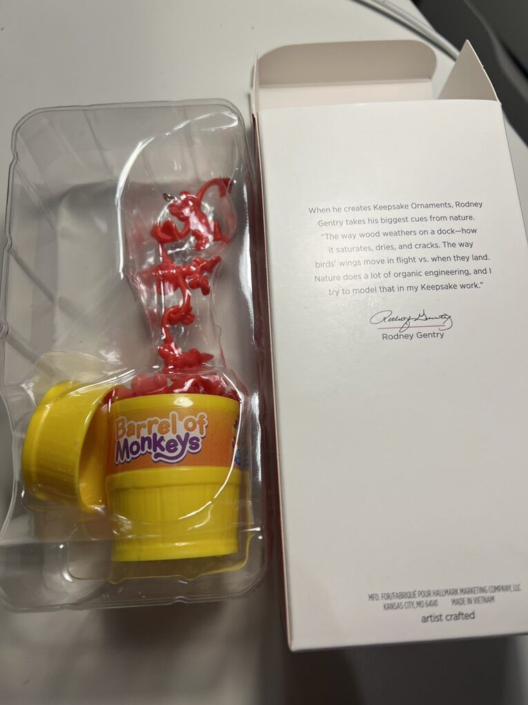 VenmoHallmark keepsake barrel of monkeys Hasbro ornament NIB 2019 Great Condition. Been stored in original box. Smoke free and pet free home.