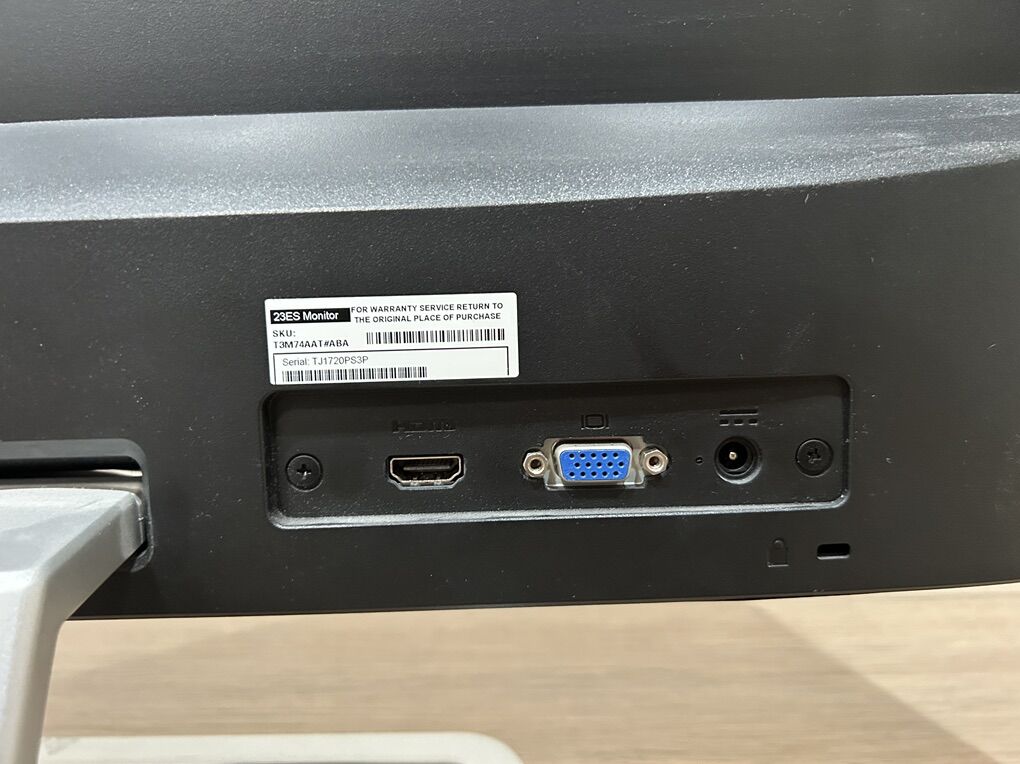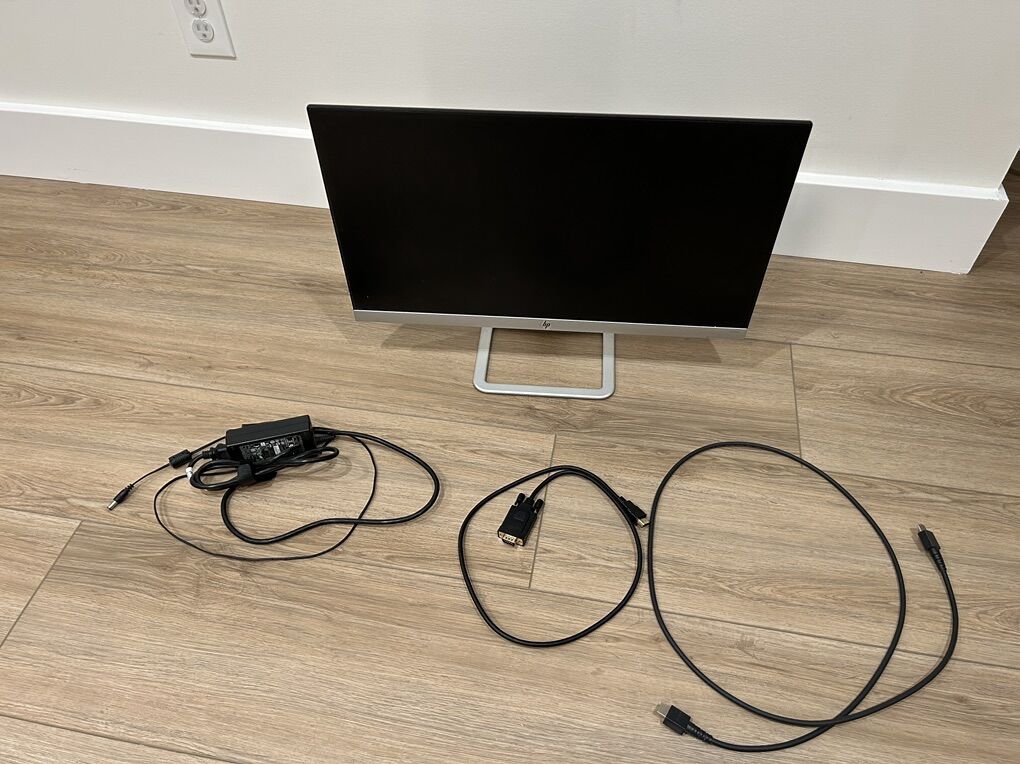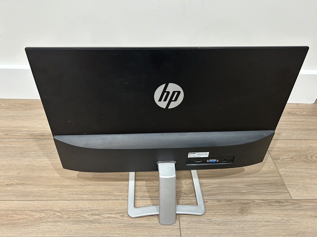 Venmo23” 60hz HP monitor. Nice flat panel. HDMI and VGA inputs. Included are an HDMI cable and HDMI to VGA Cable and the power cord.