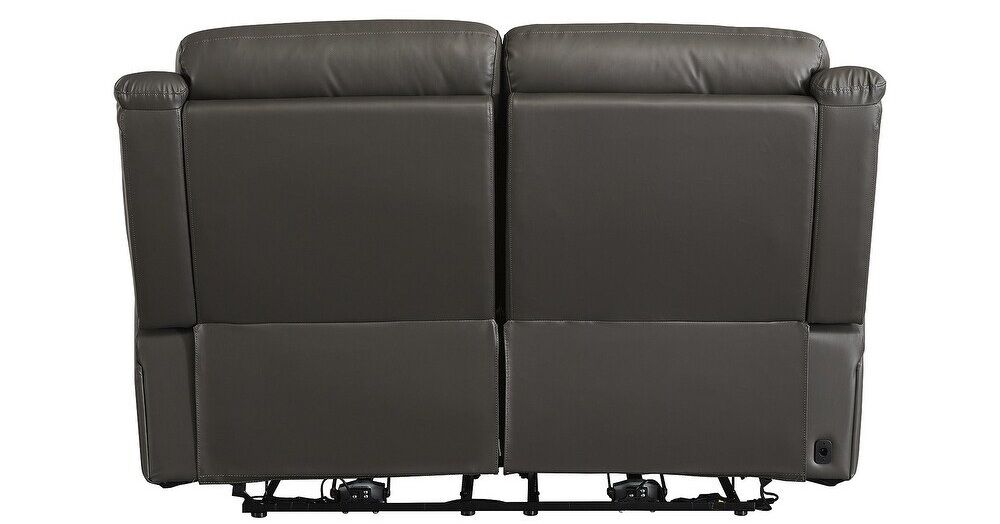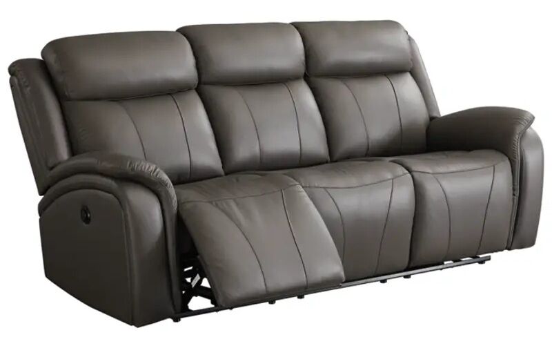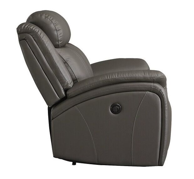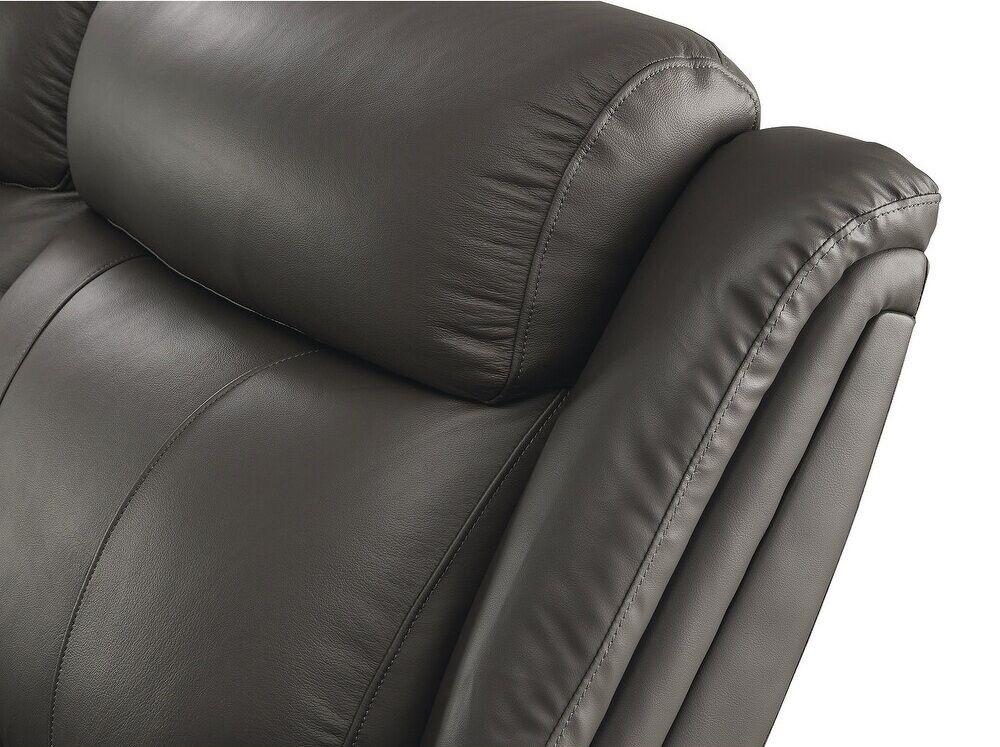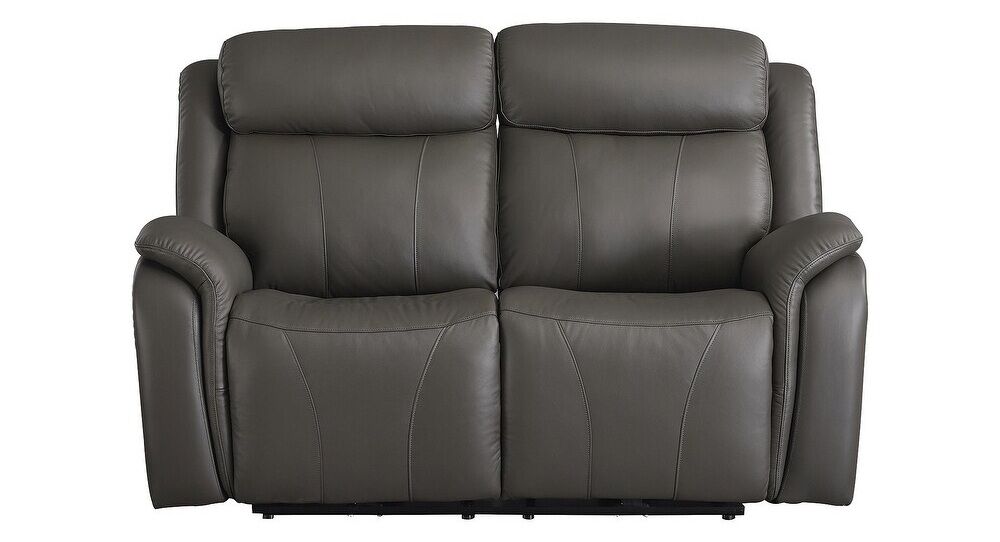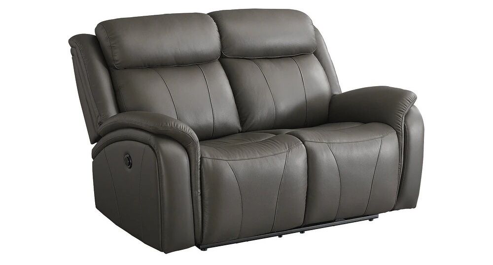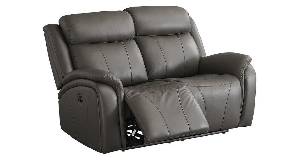 You've been looking for a piece that rests and restores after a hectic day, all while elevating your living room aesthetic. Enter this power reclining sofa and loveseat. Casually cool with contemporary bustle-back construction, it has a broad appeal thanks to on-trend dark gray upholstery. The seating area in real leather provides high-style living at a price you're sure to enjoy.
