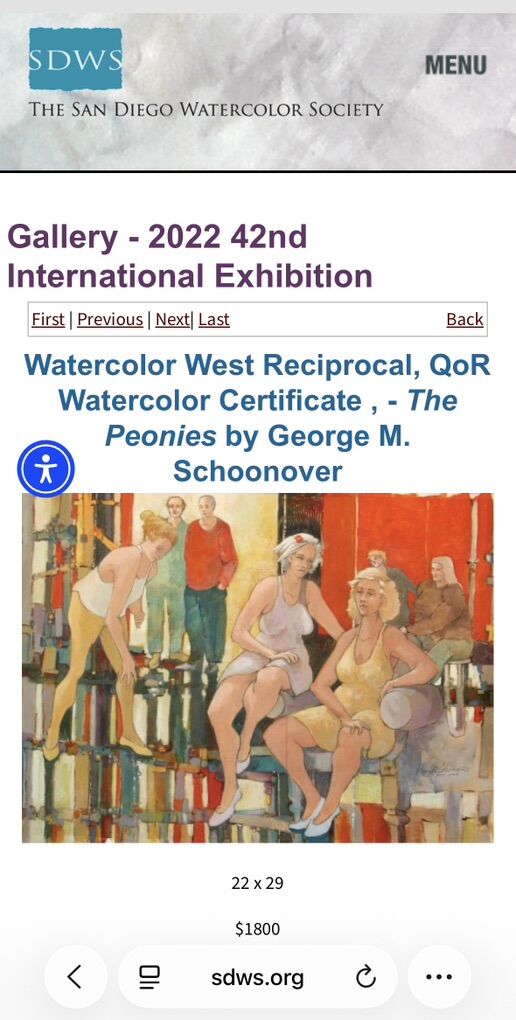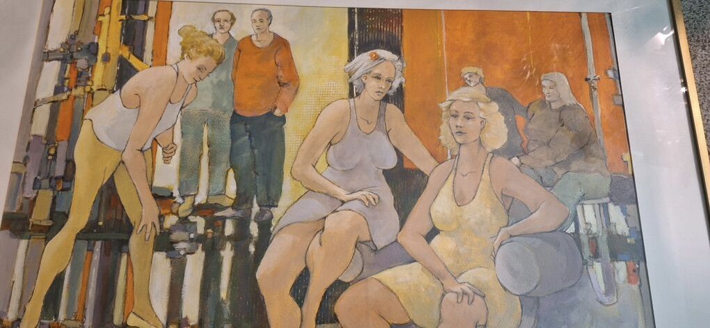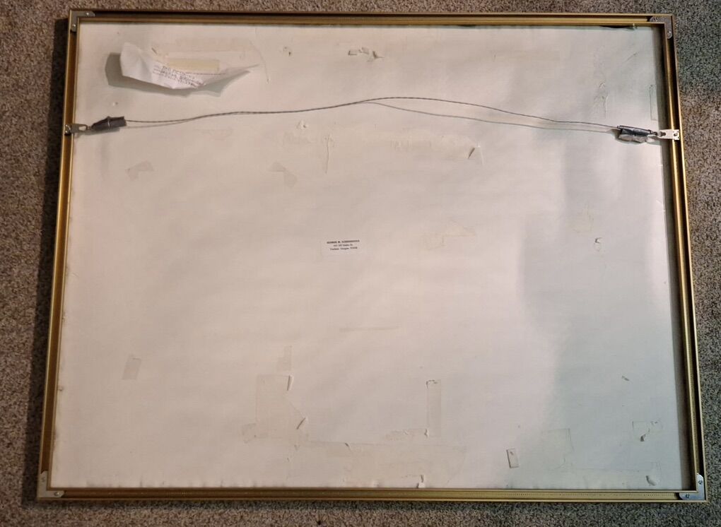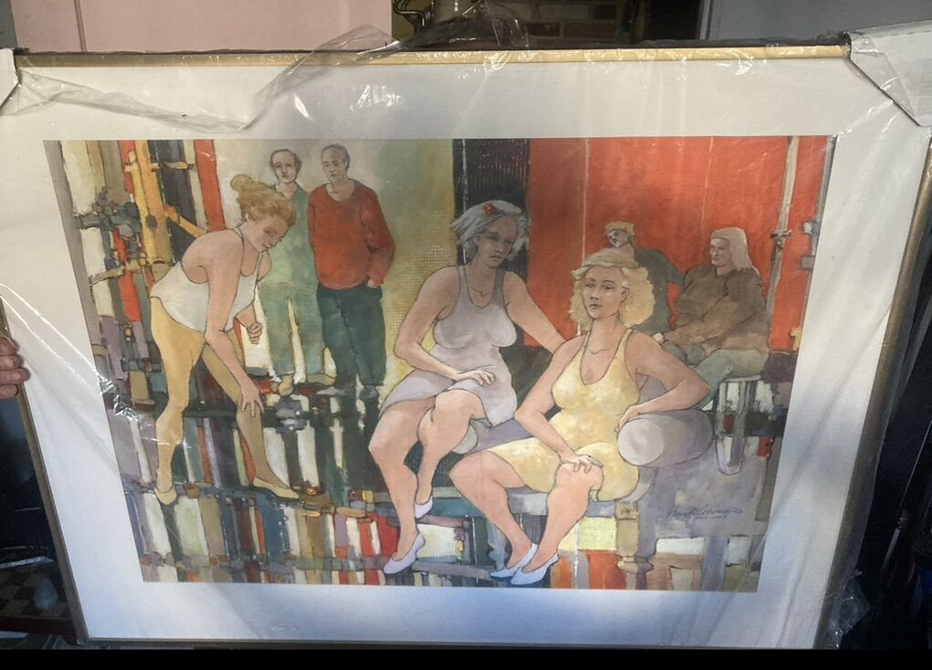ZelleFor Sale: The Peonies by George M. Schoonover Original vibrant figurative painting by Oregon coastal artist George M. Schoonover (Yachats, OR). This joyful semi-abstract work depicts women in relaxed, dynamic poses—lounging and diving—in warm oranges, yellows, and reds with bold, modernist brushwork. Watercolor/gouache on paper, professionally framed. Excellent condition Includes original artist label on back Originally priced by artist at $2,500 Now offered at $1,300 OBO Perfect statement piece for any home. Serious inquiries only