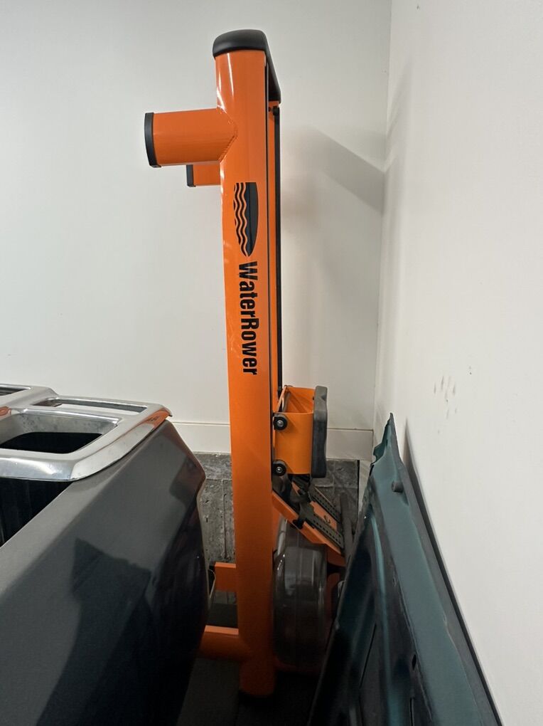 ZelleThis commercial grade water rower rowing machine from Orangetheory fitness gym works great. Needs a new battery and a new clip to hold the monitor in place. Sold as is.