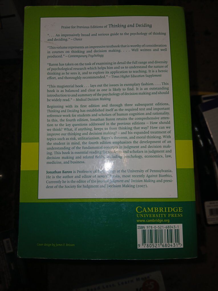 Fourth Edition Thinking and Deciding by Jonathan Baron