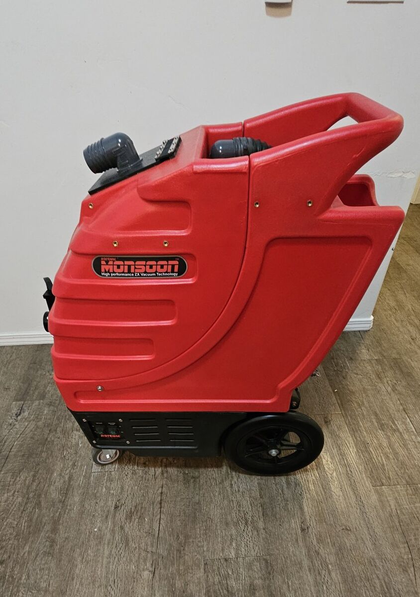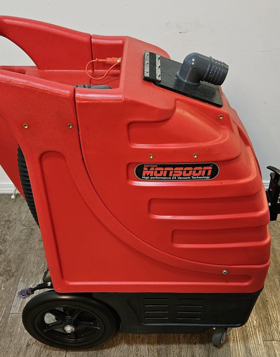 VenmoRotovac Monsoon Commercial Portable Carpet Cleaner with 12" wand, 2 sets of 25' vacuum and water like hose, solution spray tank and 50' extension cord. Everything you need to start your own carpet cleaning business. Everything is in like new condition and has only been used a handful of times. Retails for $4500 as a set.