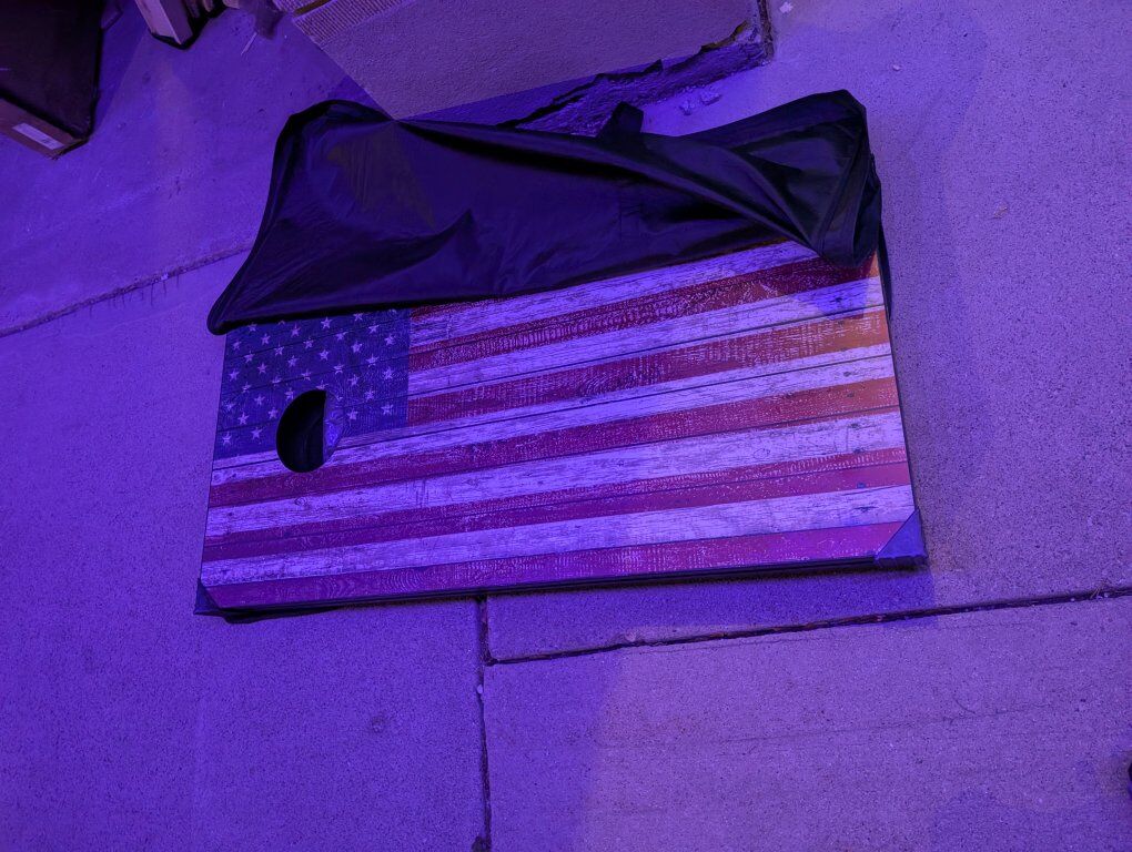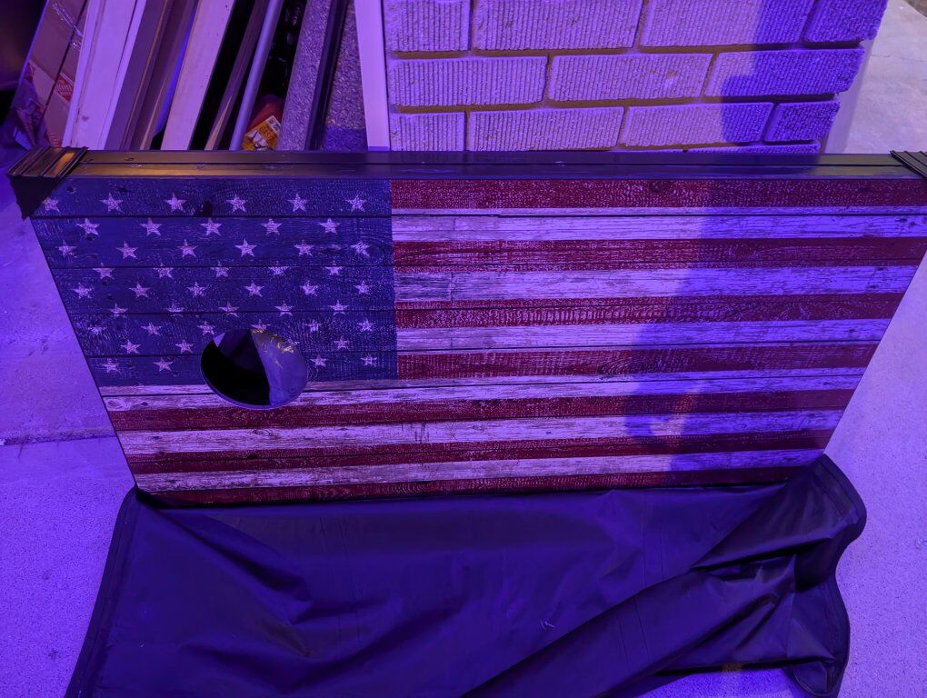 VenmoAmerican flag corn hole. new with a little damage to the edge finish