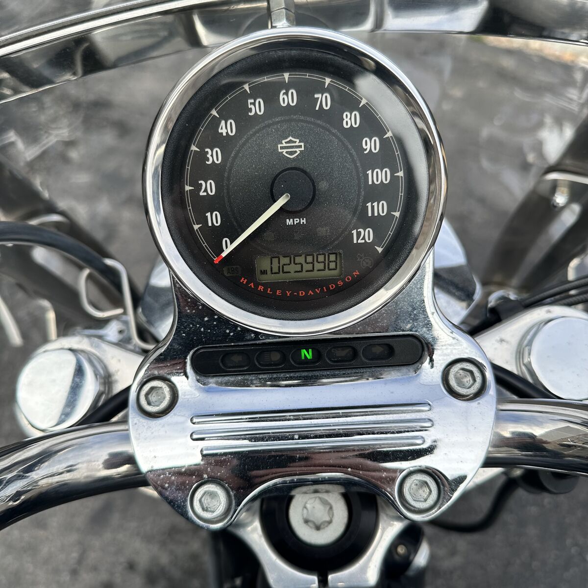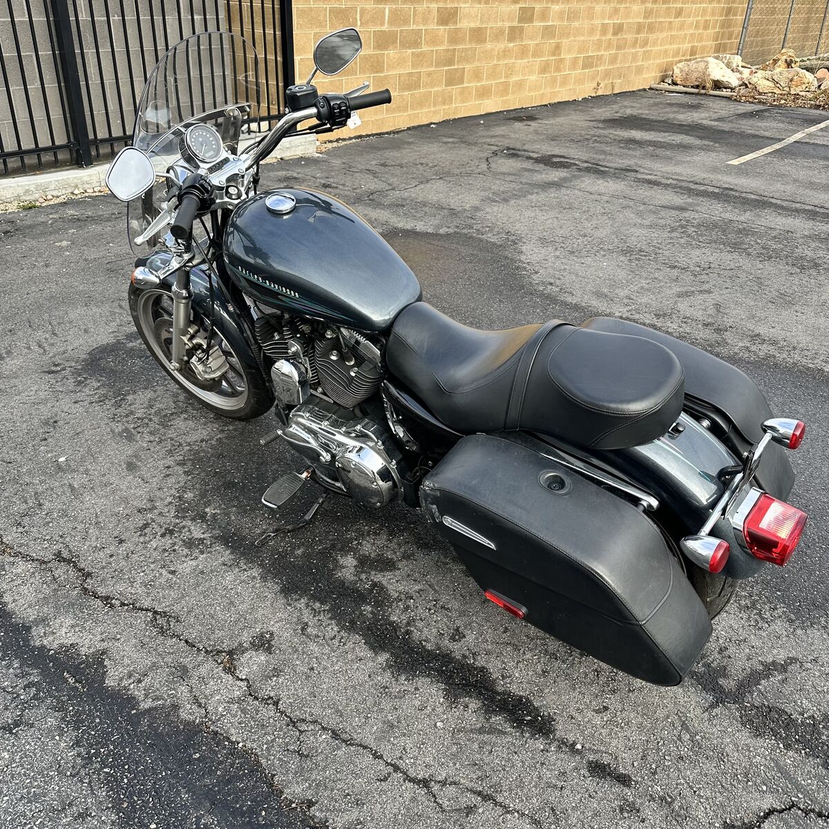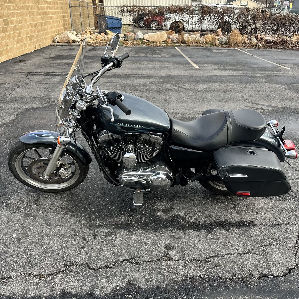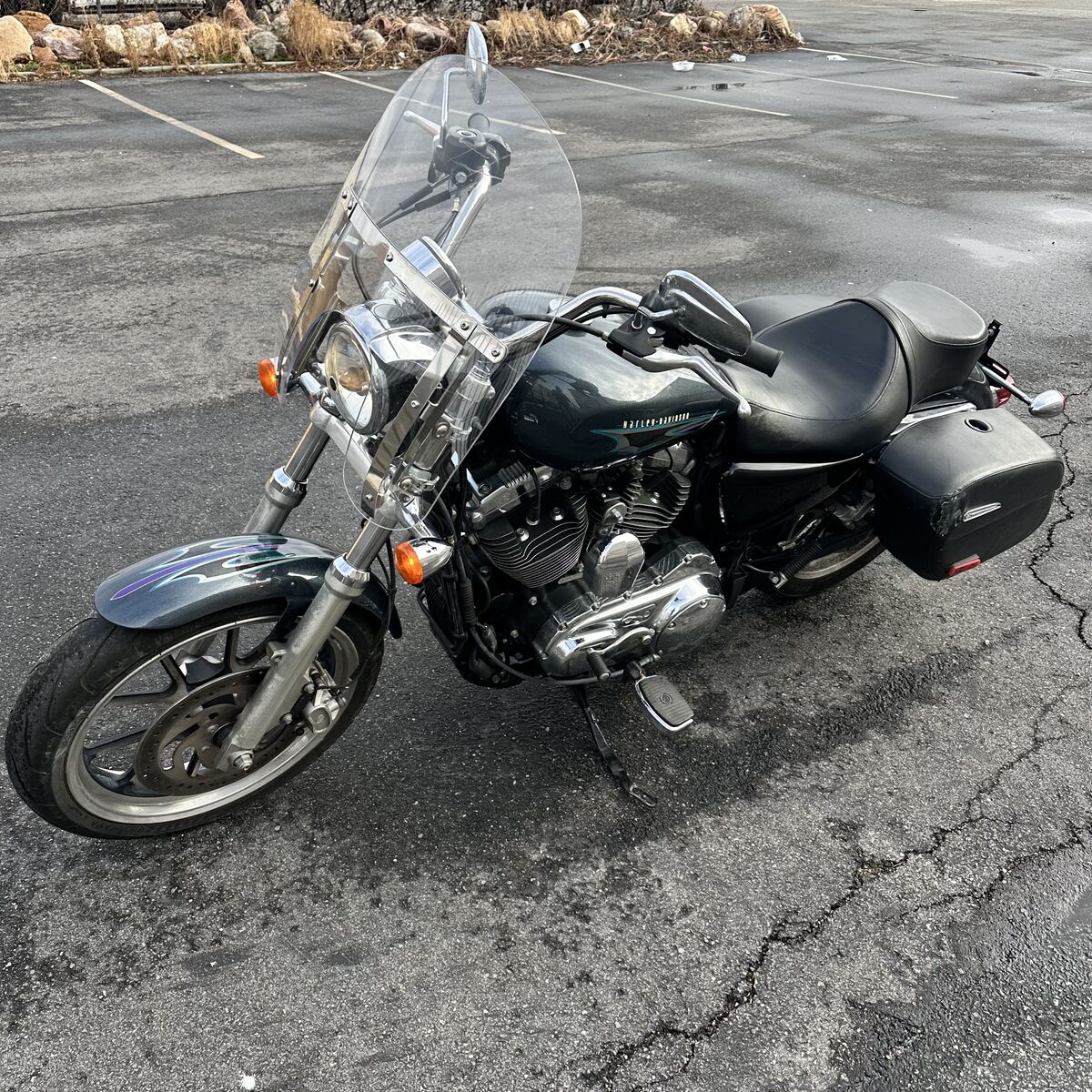 The Super Low sits a little lower than the other Sportsters and this one has a few upgrades; Saddlebags, quick release windshield, a comfort touring seat, and mini floorboards. It has a cool paint job with 90s style pin-striping. It is running smooth and is ready to ride with barley 26k miles and a clean title.