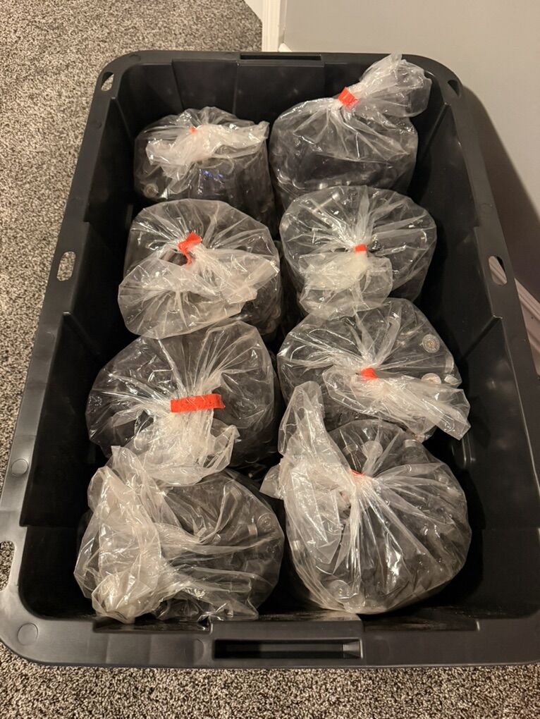 VenmoThere’s 100 per bag, i think. We have totes full of them! Not sure on exact amount that we have but it’s a lot! I believe they are all once fired! $10 per bag