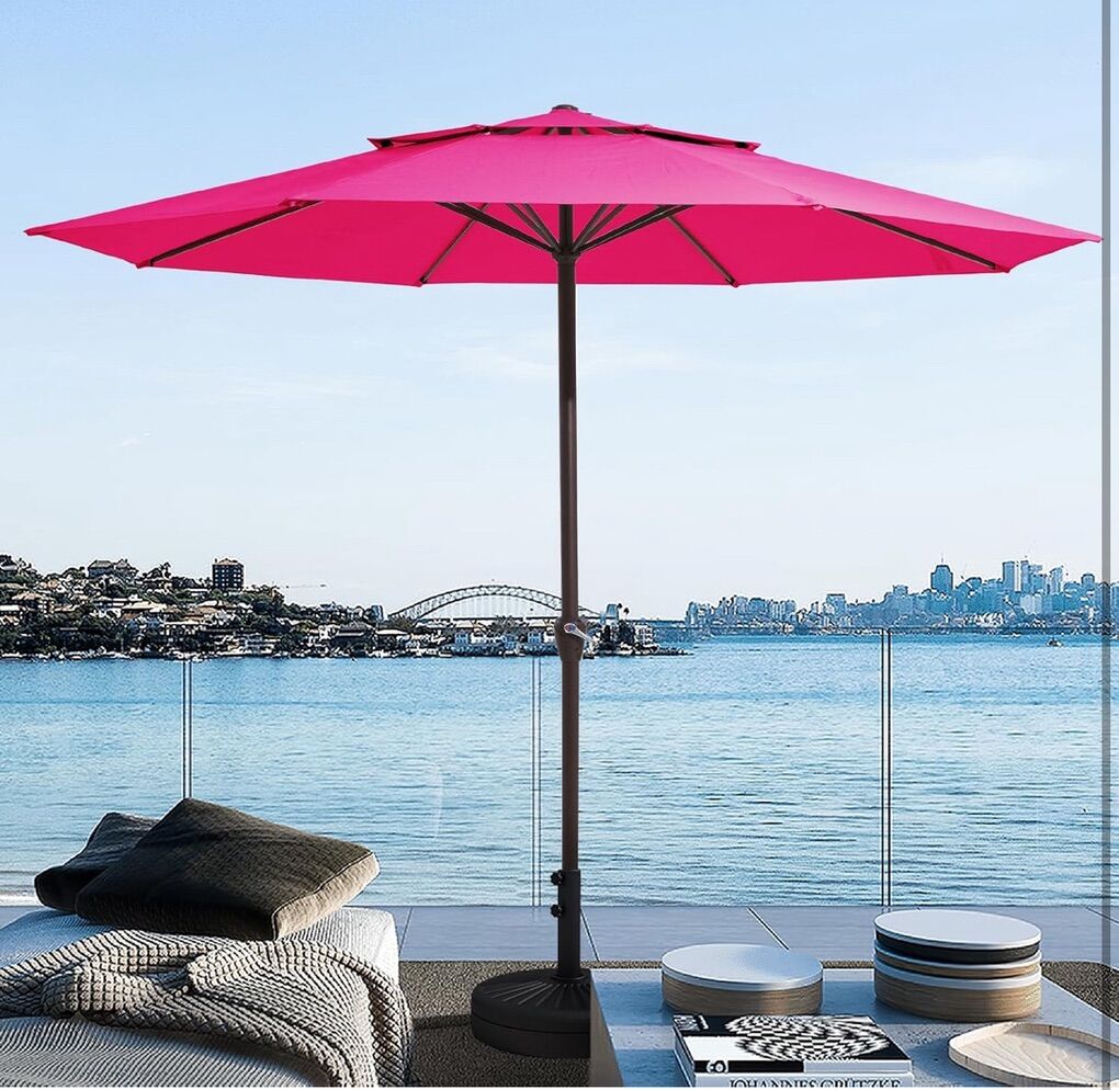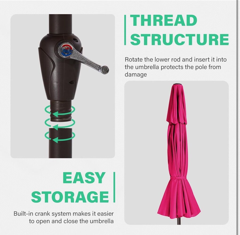 Weather-Resistant Frame: Powder-coated pole and 8 sturdy ribs give table umbrellas excellent support, and make it perform better in wind and rust resistance. The outdoor patio umbrella features double top air vents at the top, circulate the air and strengthen stability Durable Fabric: Made of 100% polyester fabric with waterproof coating and anti-UV coating on umbrella cloth, which features outdoor umbrellas high elasticity, firmness and durability, allowing you to stay cool and safe in the sun for longer periods Adjustable: Large patio table umbrella 12 FT can shade large area. Lift up the canopy with the crank handle to the top, no heavy lifting required Versatile Use: 12' Large umbrellas shade better for Market, Garden, Deck, Backyard, Pool, Balconies and Patio Table. Enjoy your coffee time in the gentle breeze and sunlight will never shine your eyes any more QUICK SET-UP: 1.9 Inches Detachable pole contributes to easy set-up and storage. Please be cautious with your finger during installation.(Note: Umbrella base not included)
