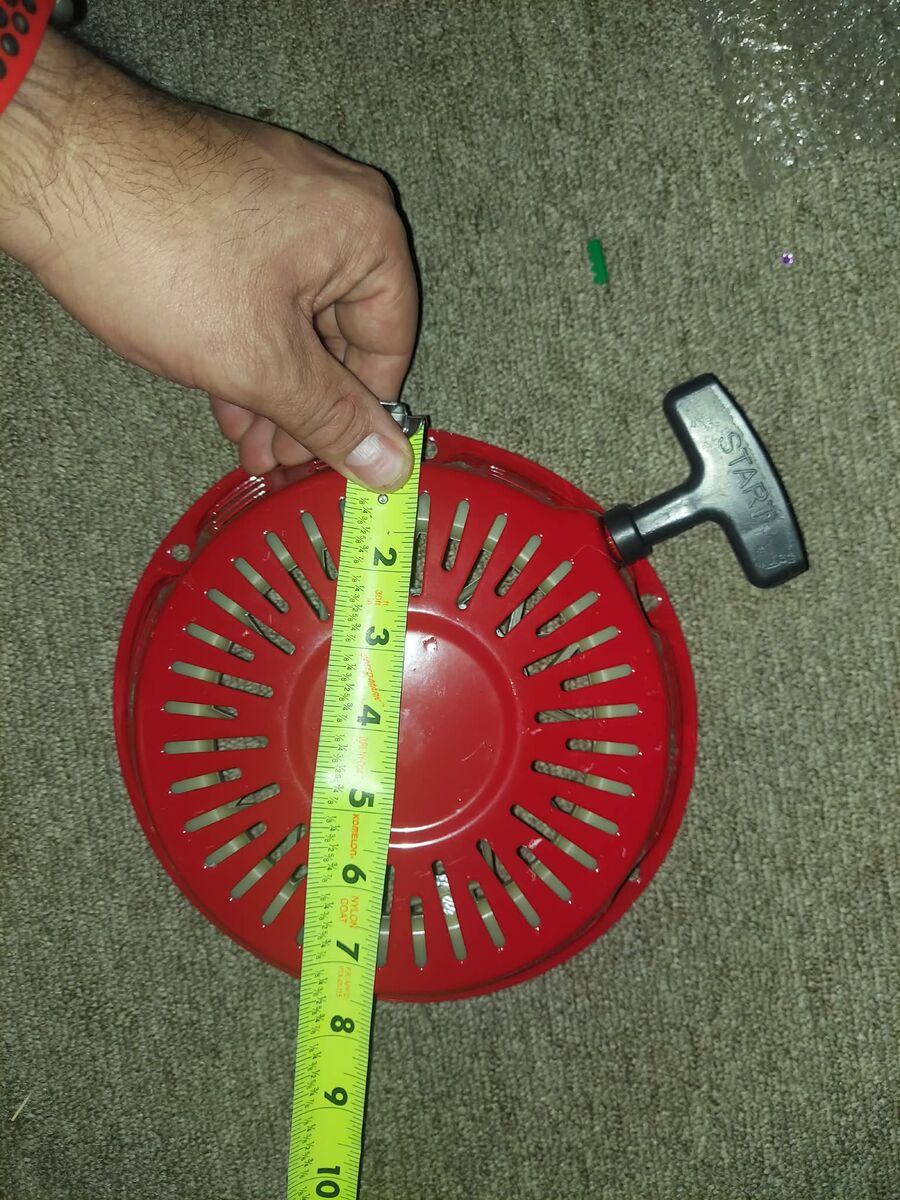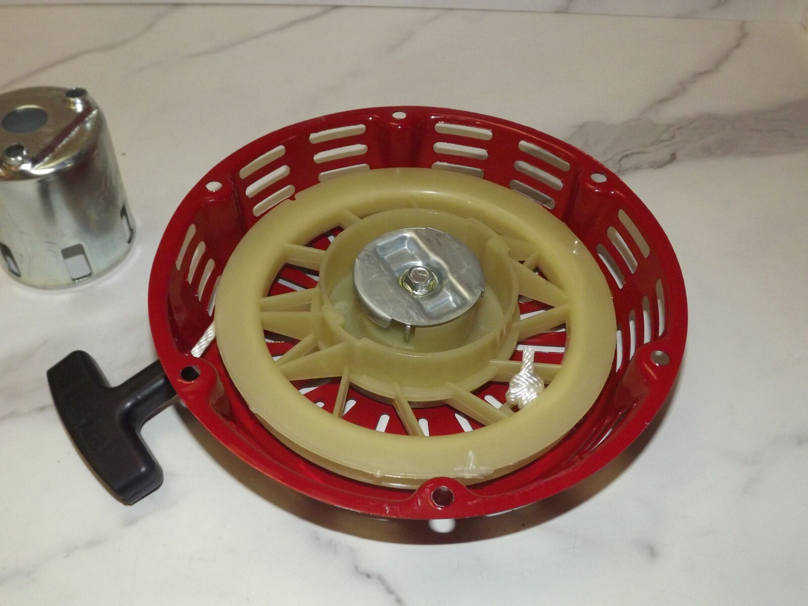 Details: • 6-bolt mounting pattern • Approx. 7.75–8” diameter • Metal starter cup included • Smooth pull, good recoil • Handle and rope included • New / never installed