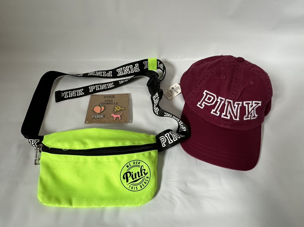 New lot of 7 items Two scarfs Two beanies Pins Fanny pack Hat All new with tags All sold as bundle only Cash only 30 for all No shipping Thank you