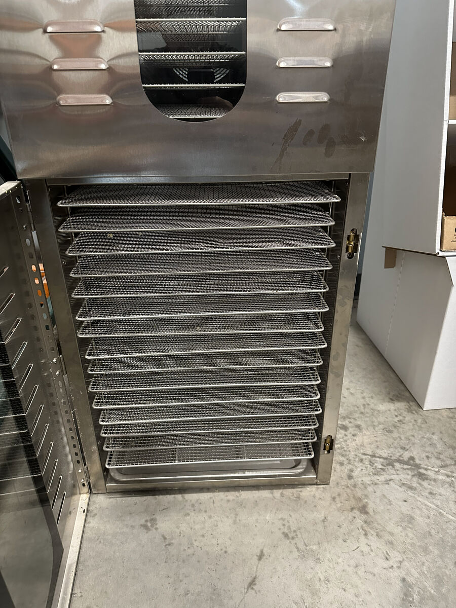 GooglePayCommercial 2-Zone 32-Tray Vertical Dehydrator — great condition, lightly used, reliable performance. Perfect for small food businesses, catering, jerky makers, fruit/vegetable dehydration, and high-volume drying. Highlights: ️ 32 stainless steel mesh trays — ~55 sq ft+ drying area ️ Digital timer & adjustable temperature control ️ Energy-efficient forced-air circulation ️ Designed for ongoing commercial use ️ Well maintained, clean, and in excellent working order