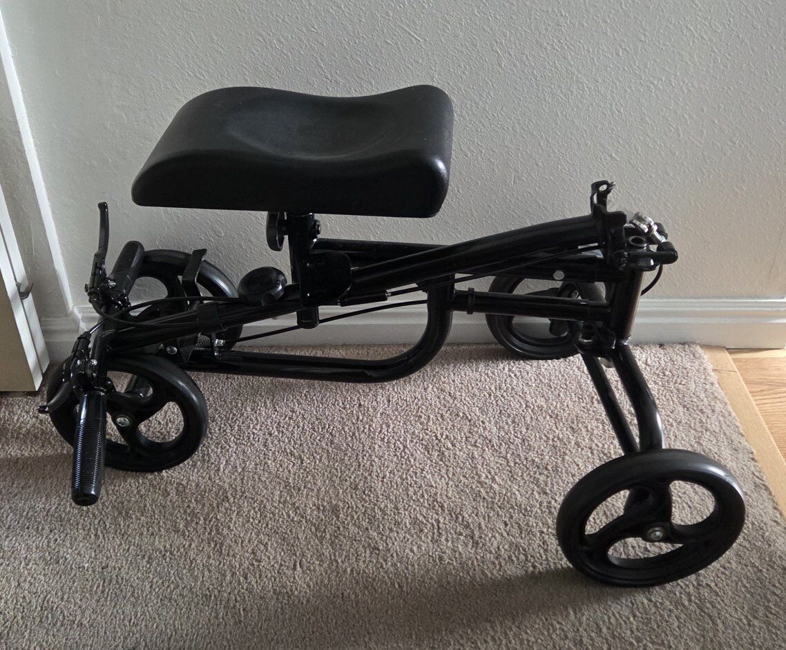 VenmoMedical knee scooter. Adjustable handle and seat height. Handle can be brought down for easier portability. comes with a removable front basket.