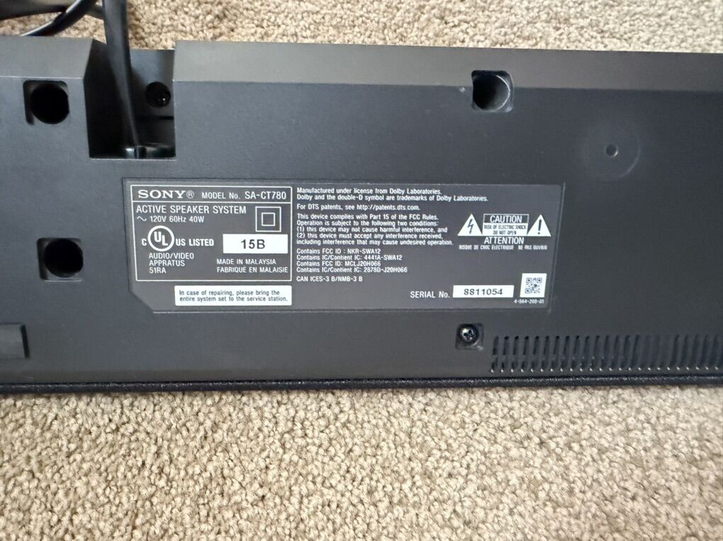 Soundbar model: Sony SA-CT780 Subwoofer model: Sony SA-WCT78 Together as: Sony HT-CT780 Soundbar System