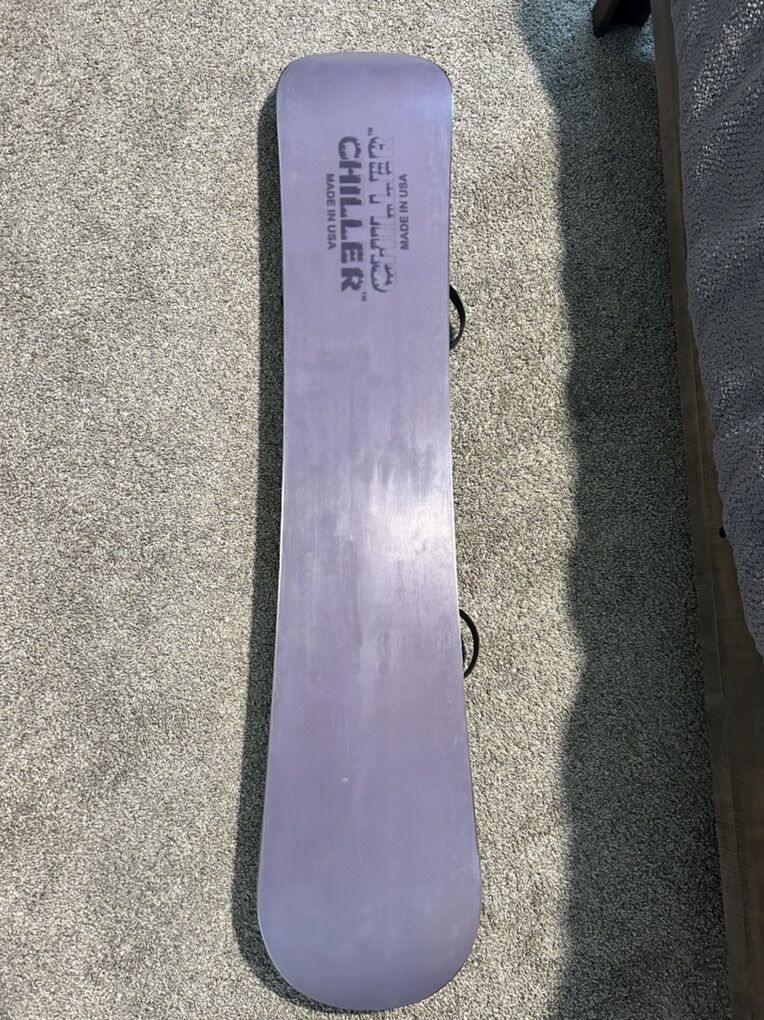Venmo155 Reverse camber snowboard with medium Union bindings in great shape.