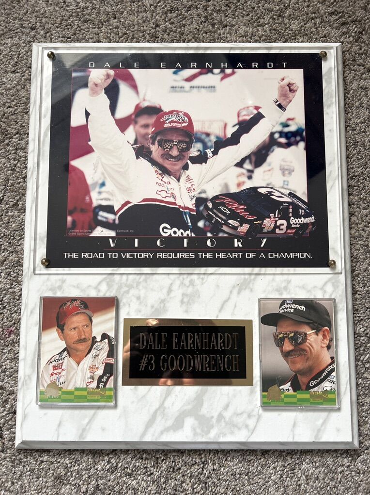 1- 11x14 Marble Wood Plaque w/name plate and (2) NASCAR Pinnacle Racing Cards
