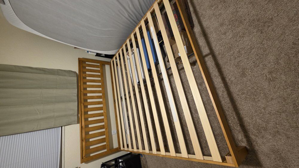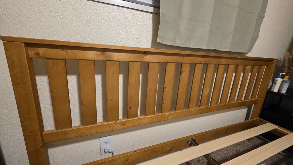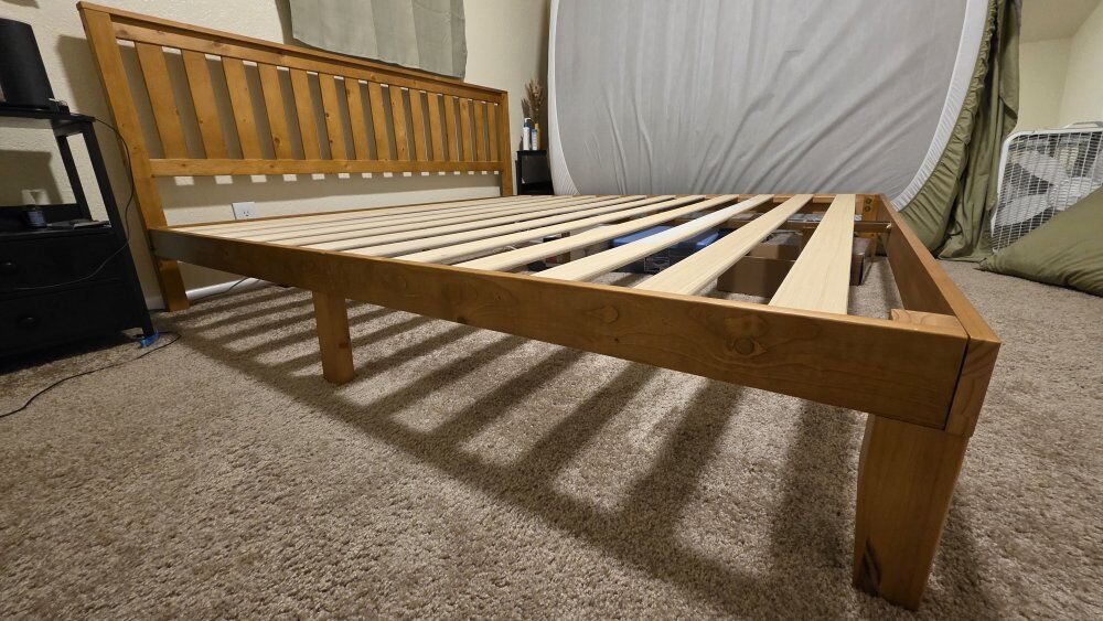 ZelleLightly used Bear Hybrid Mattress (memory foam and coil) and Solid Wood Bed Frame. Both King Size. The frame has 12" underneath great for storage. No pets or children in household. Mattress always had a waterproof protector on (Included in set).