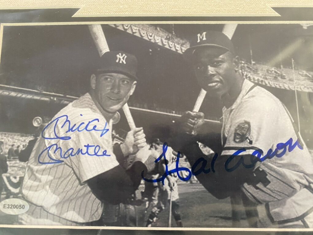 ApplePayMickey Mantle & Hank Aaron Dual Autograph Hand Signed 8x10 black & white photo display Double Name Matte Die-cut with Certified Authentic Sticker #E320050