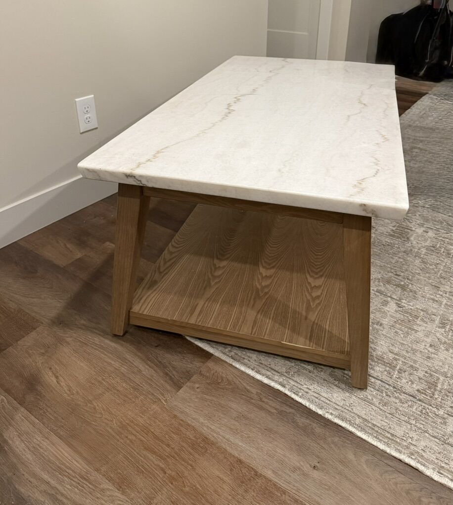 Modern square marble top coffee table. Sturdy and beautiful, small wheels for easy transport, not visible