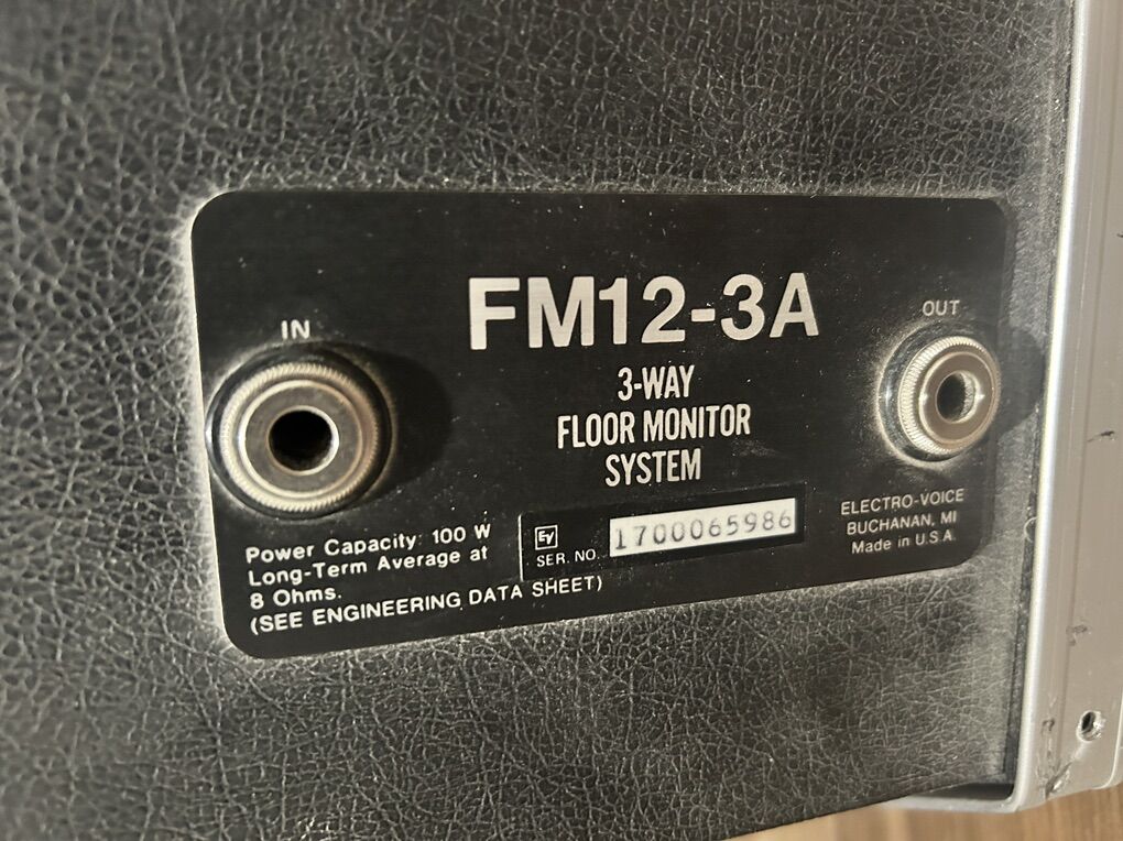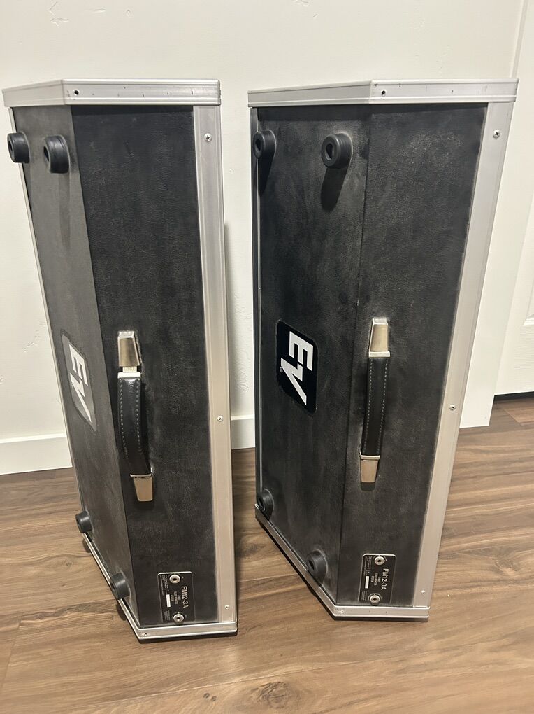 VenmoPair of EV FM12-3A three-way floor monitors. These are professional-grade speakers with excellent clarity and strong output—great for live sound, stage monitoring, rehearsal spaces, or PA use. Cabinets are solid and built like a tank; all drivers are working as they should.