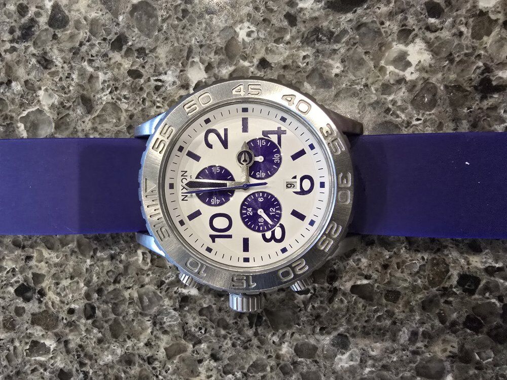 VenmoI have 2 Nixon 42-20 chrono watches. One has a purple polyurethane band, the other has a stainless band. Both are in great condition with no scratches on the face and both have been verified to be fully functioning with new batteries.
