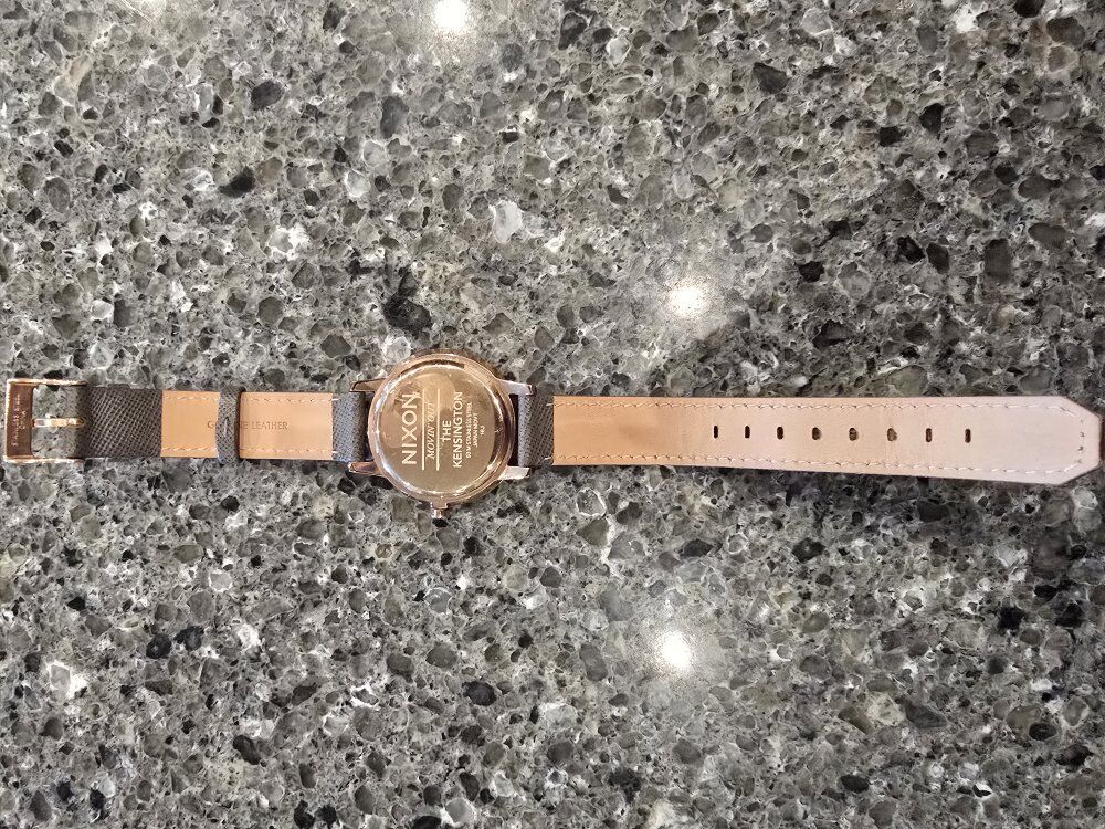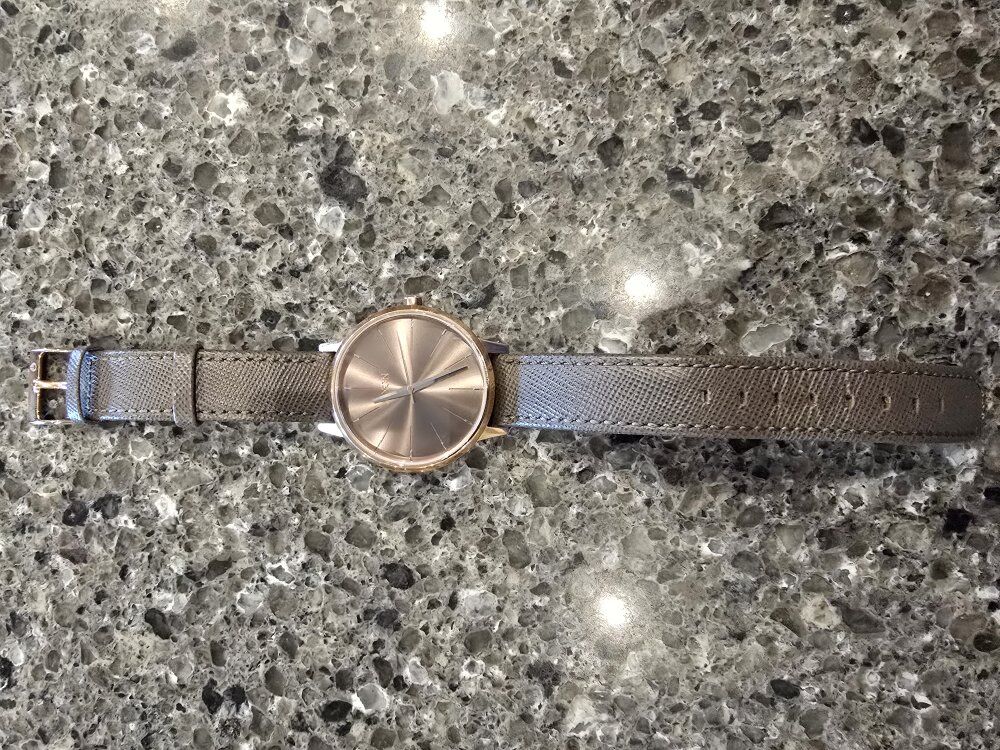 VenmoNixon "The Kensington" women's watch. Rose gold color with taupe leather band. Watch is in excellent condition with no scratches on the face and no cracks in the band.