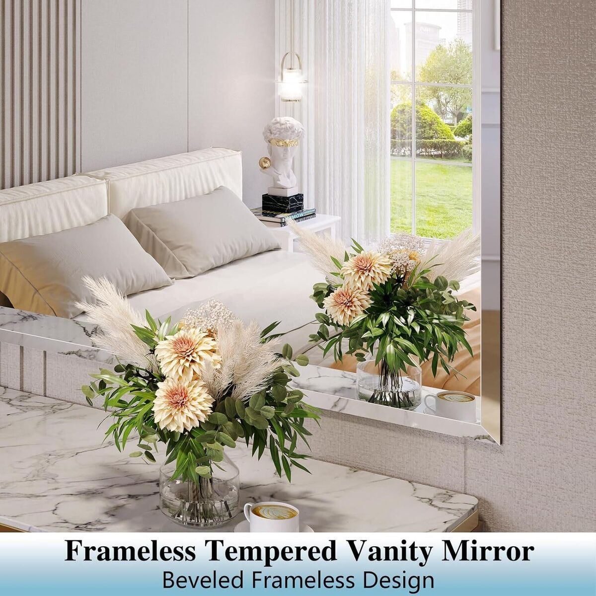 • Elegant Beveled Design - JIINGYO Rectangle vanity mirror for wall with its frameless and beveled edges, this mirror exudes a modern and minimalist aesthetic, seamlessly complementing various room styles while adding a touch of refinement