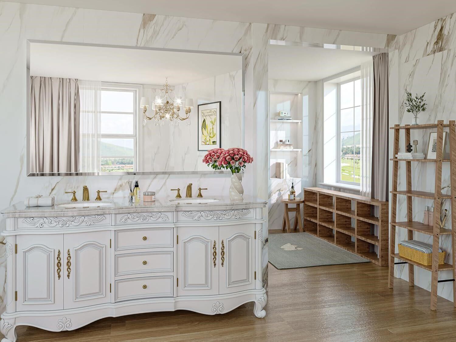 • Easy Installation - JIINGYO bathroom vanity mirrors come fully assembled and can be easily installed in seconds with the metal French Cleat Hanger of the mirror, reduce the trouble for positioning when hanging, easier than other traditional old-design hanging hole mirrors. The beveled bathroom mirrors come with an installation manual for reference