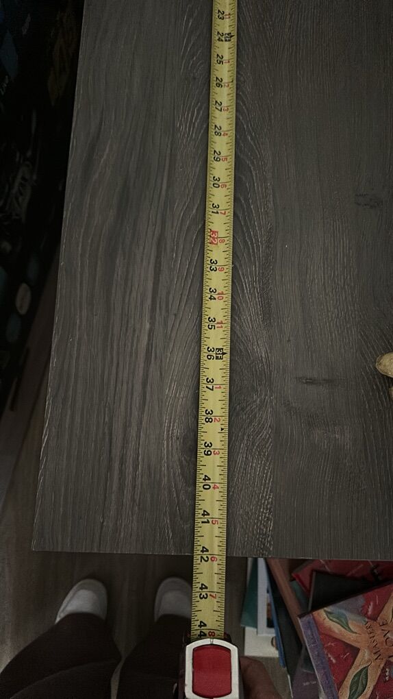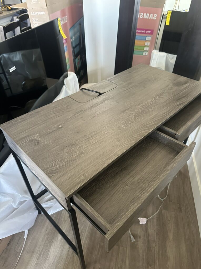 Modern wood desk/table in good condition. Has a drawer and built-in power outlet/USB for charging. Sturdy, clean, and looks great in an office or bedroom.