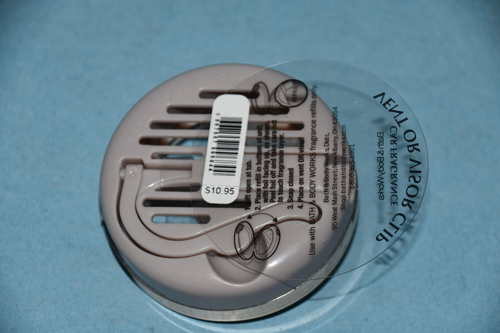 This NEW BATH & BODY WORKS "WATER LILY" CAR AIR FRESHENER is for the VENT or VISOR CLIP. Our home is smoke free. Questions??? Please ask. We are located in Plain City. Cash only please.
