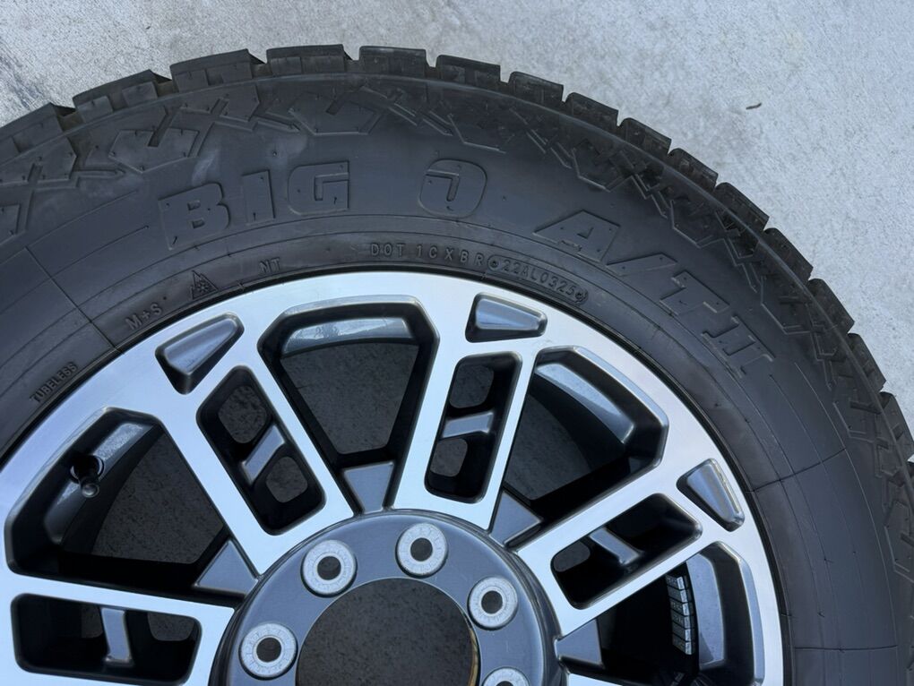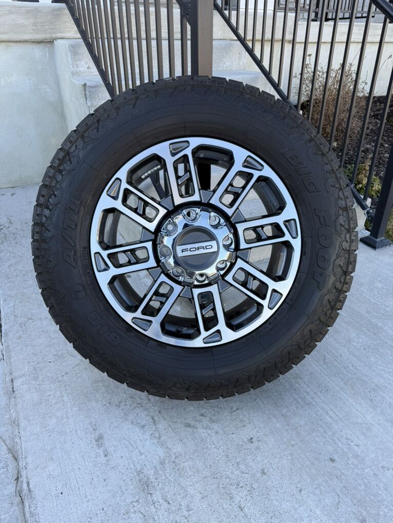 ApplePaySet of 4-Ford F350 Limited Rims And Tires 275/65R20 Big O Big Foot AT Load E in great condition asking $3200 obo Tires are like new only 2000 miles on them Rims are new only 100 miles Comes with lug nuts and center caps I can sell the rims or tires separately Bolt pattern 8-170 They will fit ford f250- f350 from 1999-2026 Text anytime 385-402-2292