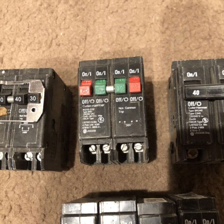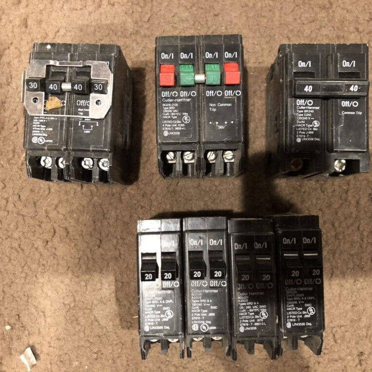 (4) Cutler-Hammer BRD tandem 20A (1) Cutler-Hammer BR 2-pole 40A (1) Cutler-Hammer BRD 1/2-pole combo 20/20/30A (1) Cutler-Hammer BRD 2-pole combo 30/40A