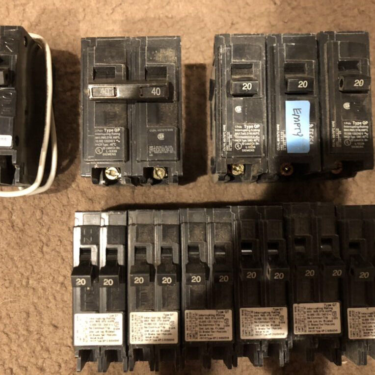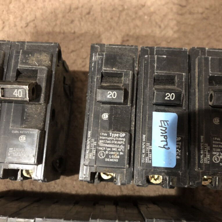 (3) Siemens QP 1-pole 20A (6) Siemens QT tandem 20A (1) Siemens QP 2-pole 40A (1) Siemens QPF GFCI 20A