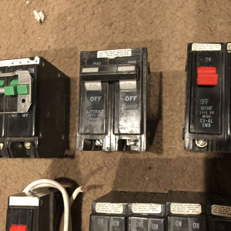 (2) Bryant BR 1-pole 20A (4) Bryant BRD tandem 20A (1) Bryant BR GFCI 20A (1) Bryant BR 2-pole 40A (1) Bryant BRD 2-pole combo 20/20A