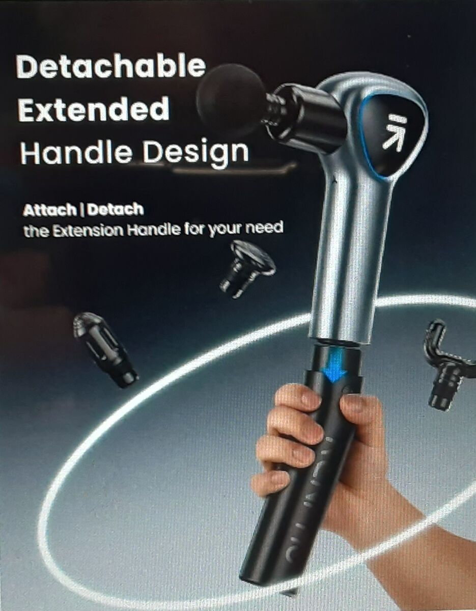 This Is A New RENPHO Reach Handheld Percussion Impact Massage Gun with Extension Handle for Whole Body Muscle Massage.
